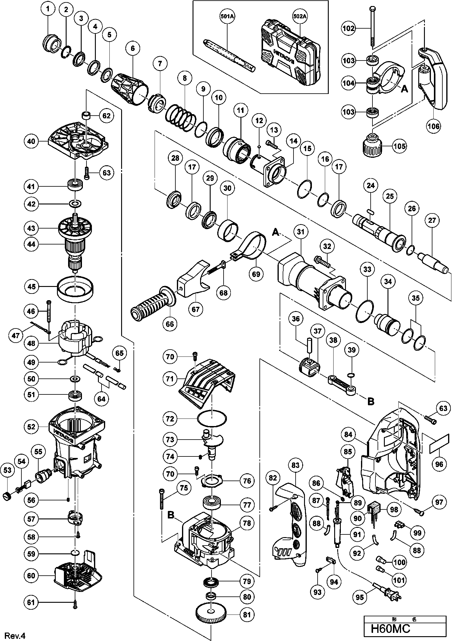 Spare parts list of model Hikoki H60MC