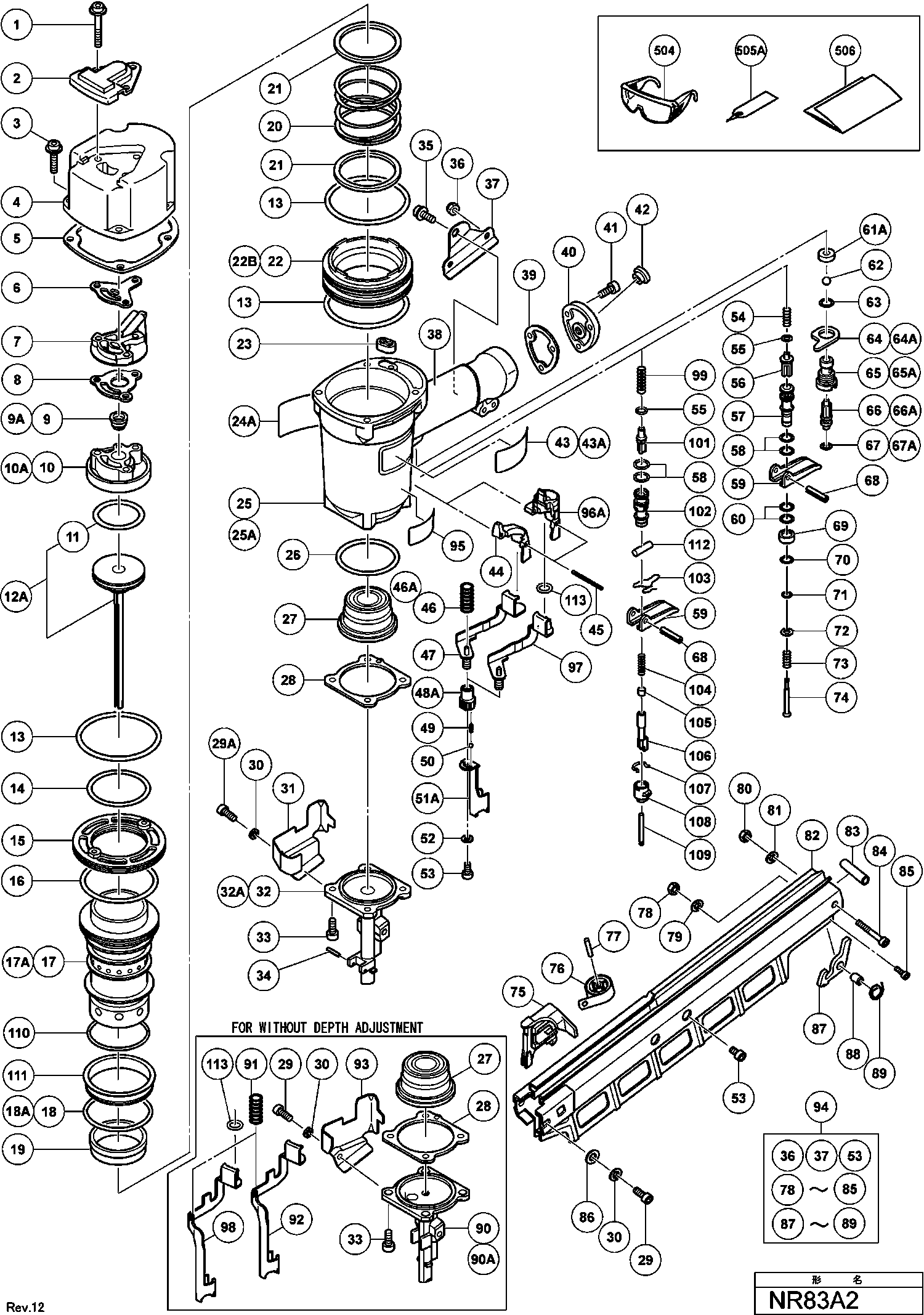 Spare parts list of model Hikoki NR83A2
