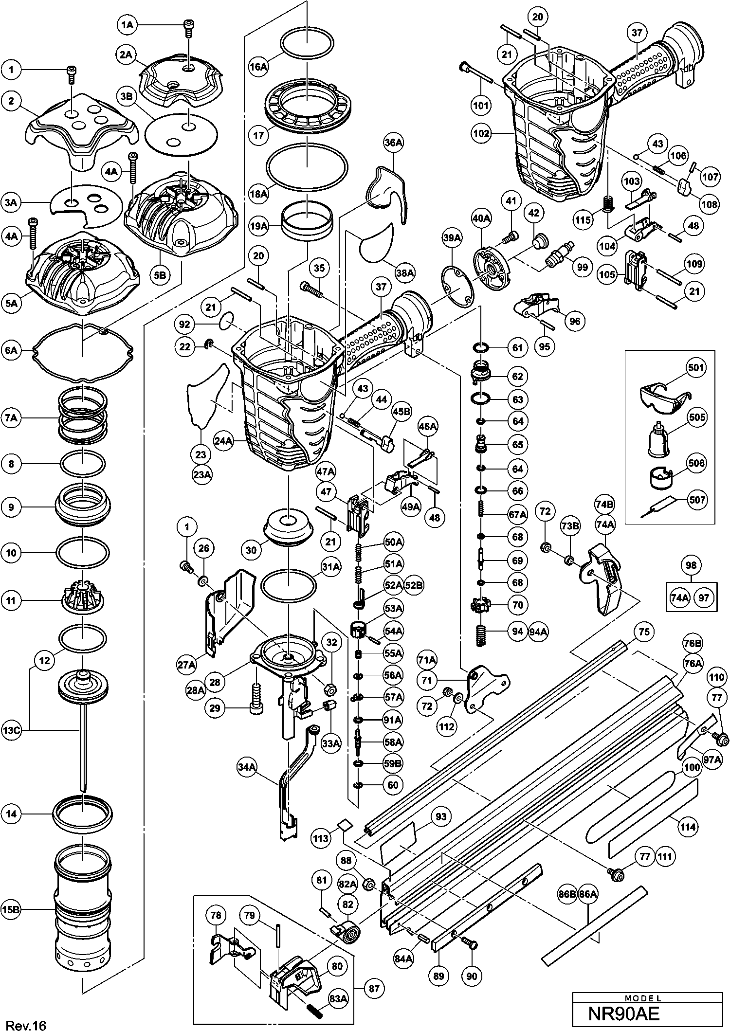 Spare parts list of model Hikoki NR90AE