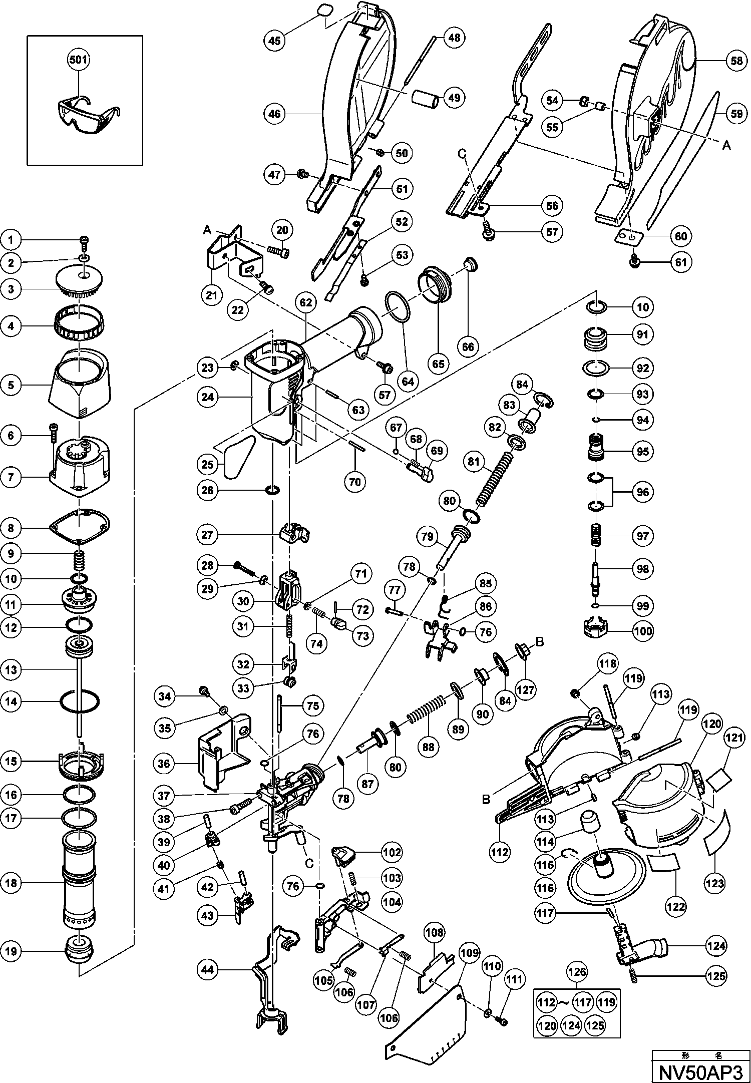 Spare parts list of model Hikoki NV50AP3