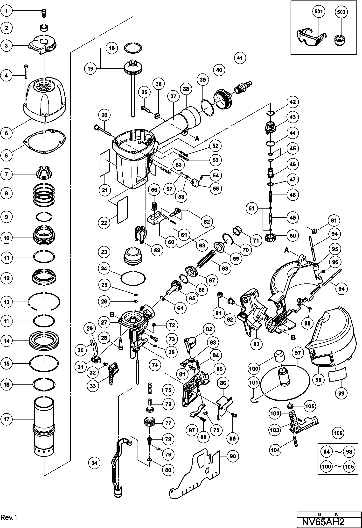 Spare parts list of model Hikoki NV65AH2
