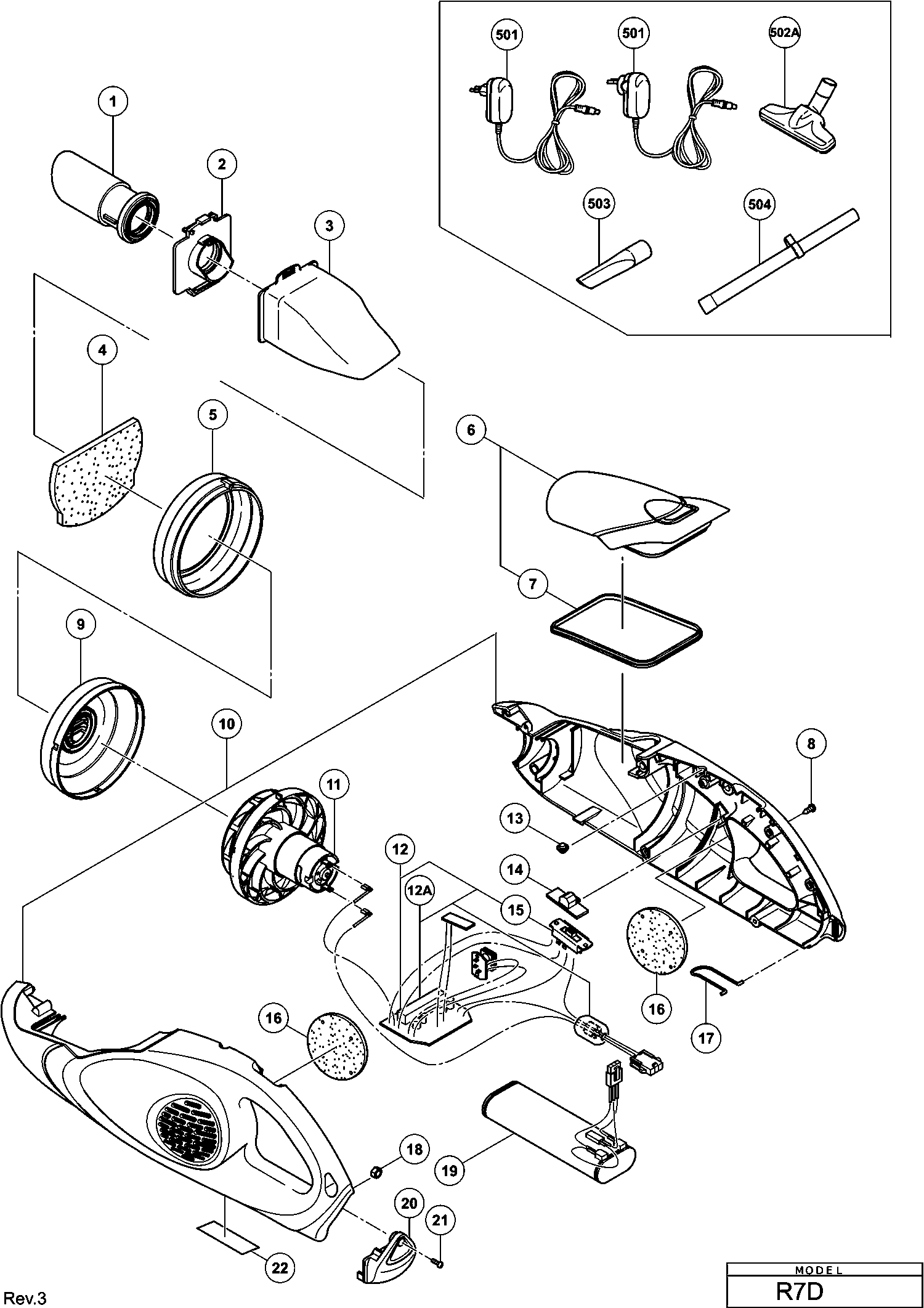 Spare parts list of model Hikoki R7D