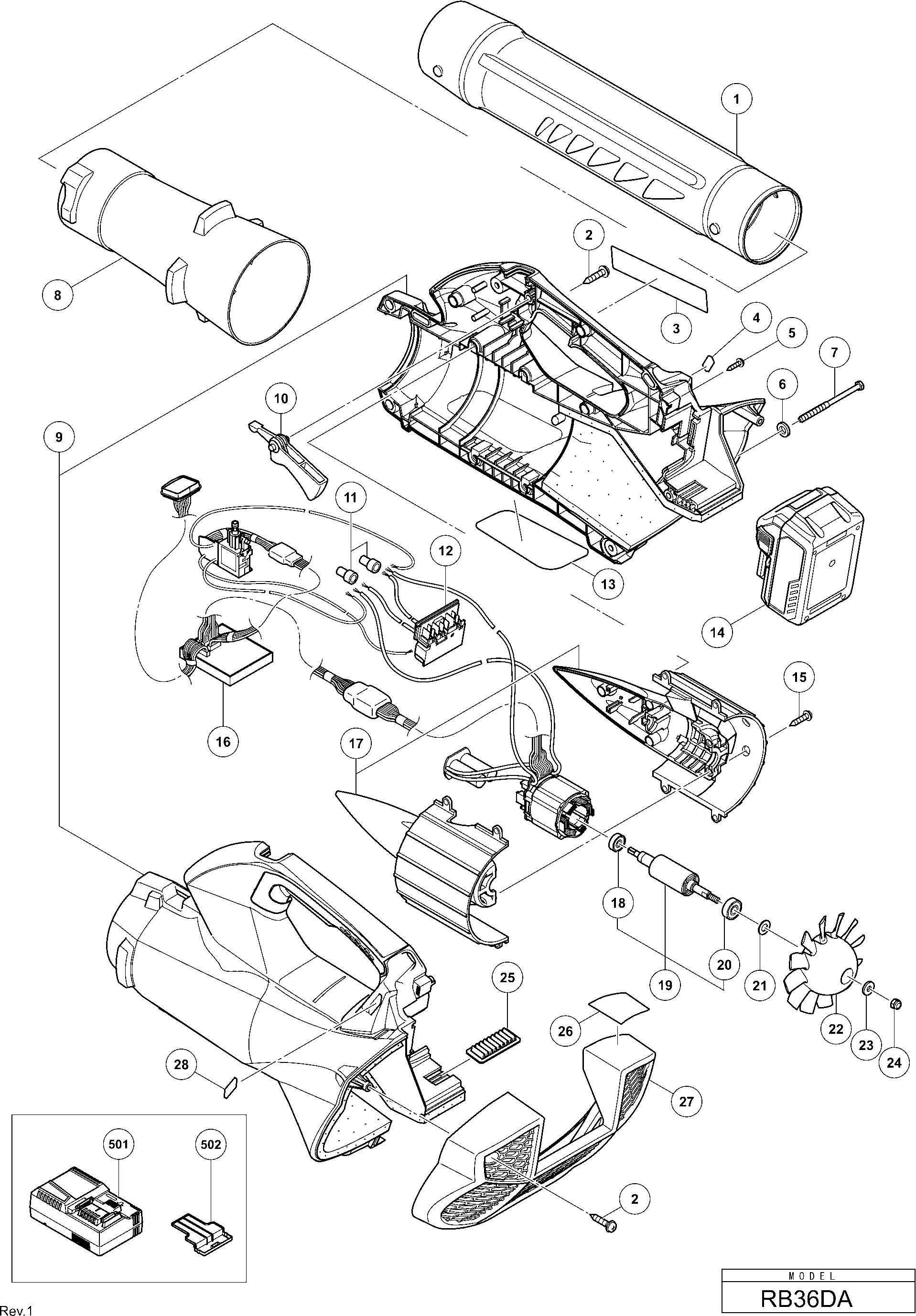Here you will find all available parts and drawings of the 'Hikoki RB36DA'. From here you can order all desired parts directly. Many parts must be ordered from the manufacturer, depending on the brand, this takes one to four weeks. All the information we have is on our website, we cannot advise you on what you need, for that you will need to return the machine for repair. Please note the following when ordering: