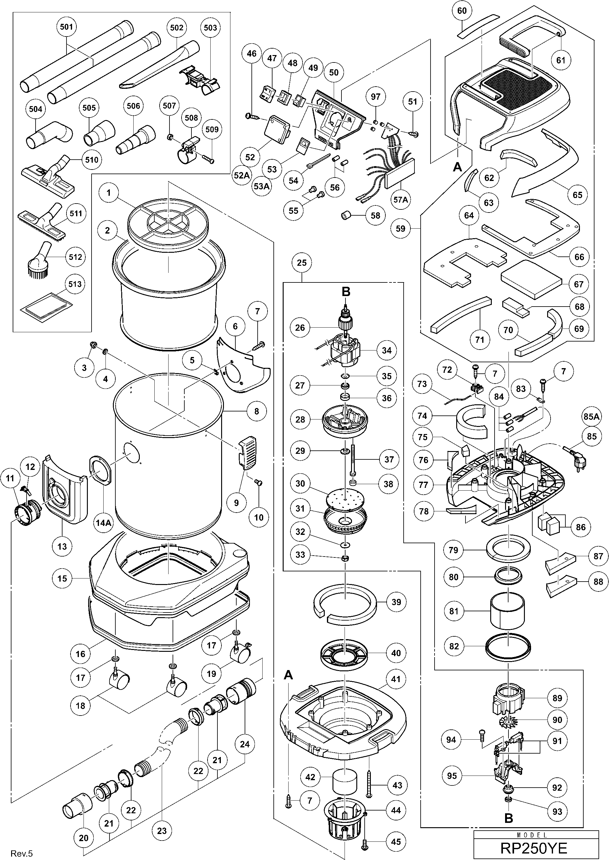 Here you will find all available parts and drawings of the 'Hikoki RP250YE'. From here you can order all desired parts directly. Many parts must be ordered from the manufacturer, depending on the brand, this takes one to four weeks. All the information we have is on our website, we cannot advise you on what you need, for that you will need to return the machine for repair. Please note the following when ordering: