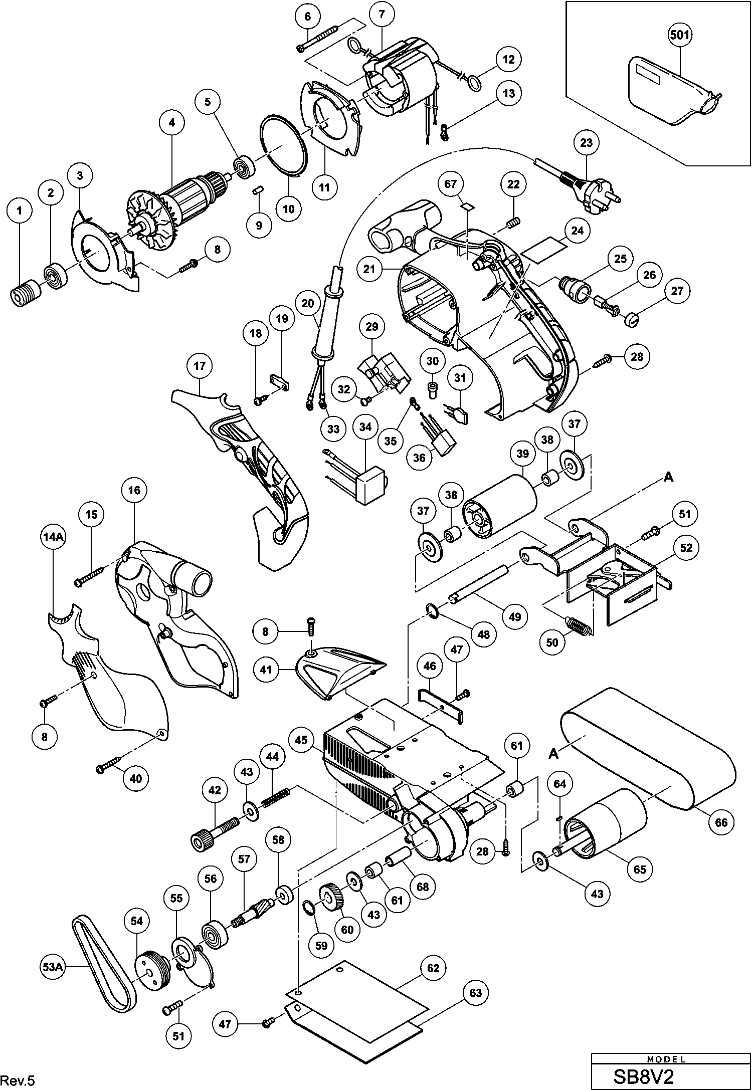Spare parts list of model Hikoki SB8V2
