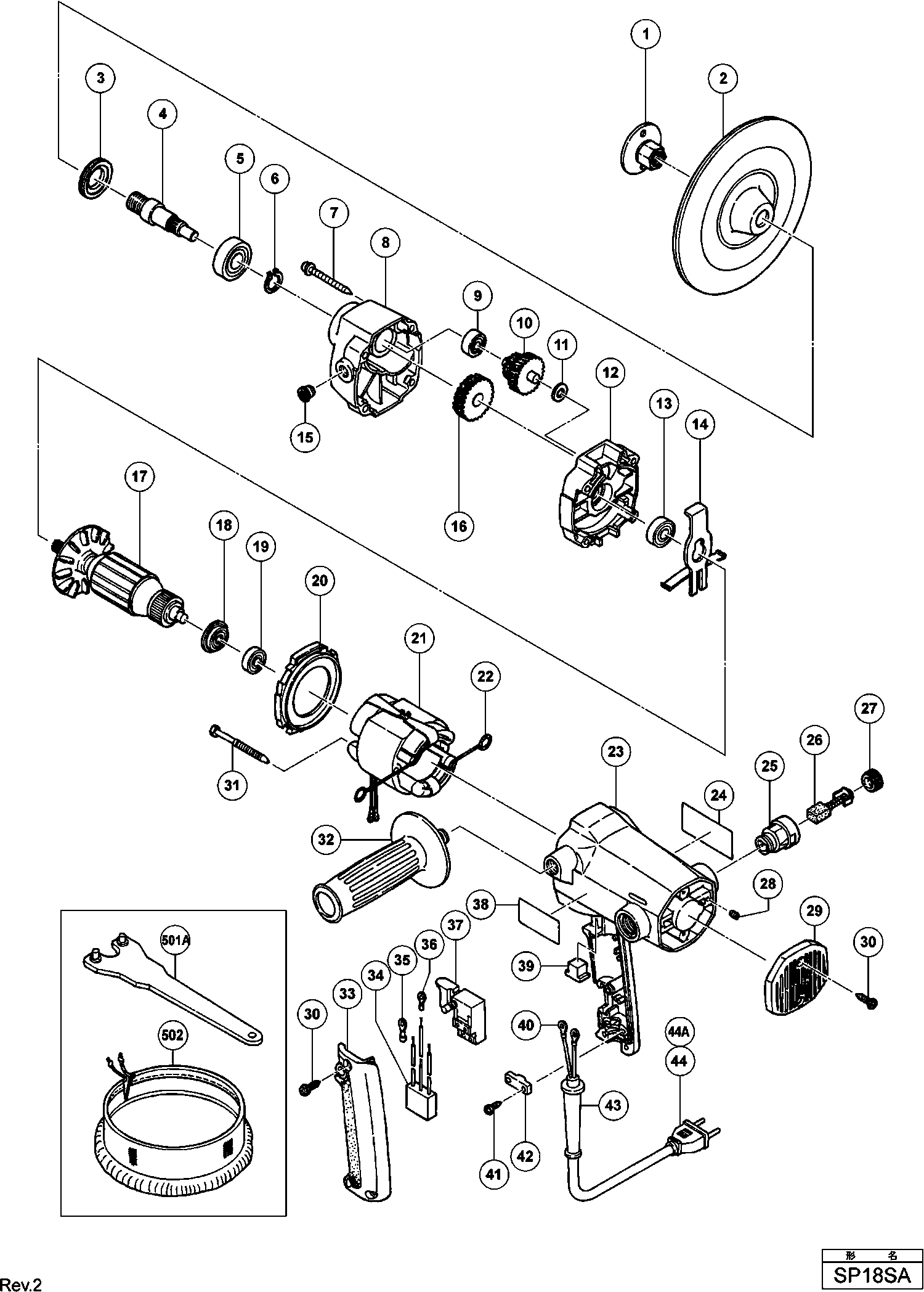 Here you will find all available parts and drawings of the 'Hikoki SP18SA'. From here you can order all desired parts directly. Many parts must be ordered from the manufacturer, depending on the brand, this takes one to four weeks. All the information we have is on our website, we cannot advise you on what you need, for that you will need to return the machine for repair. Please note the following when ordering:
