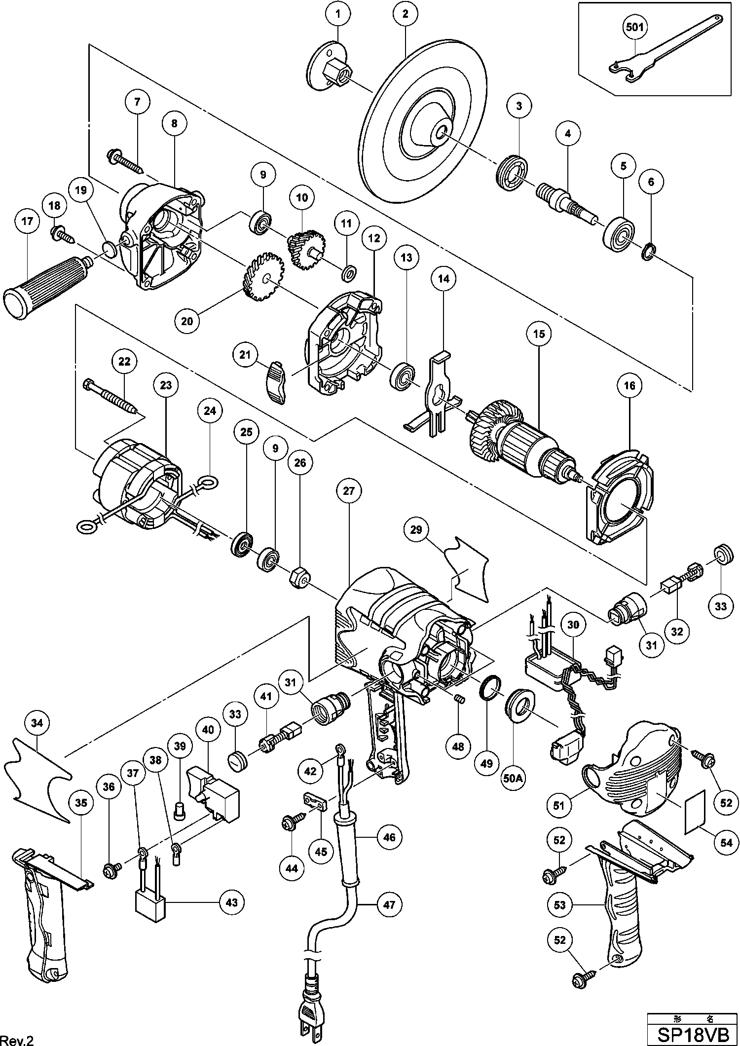 Spare parts list of model Hikoki SP18VB