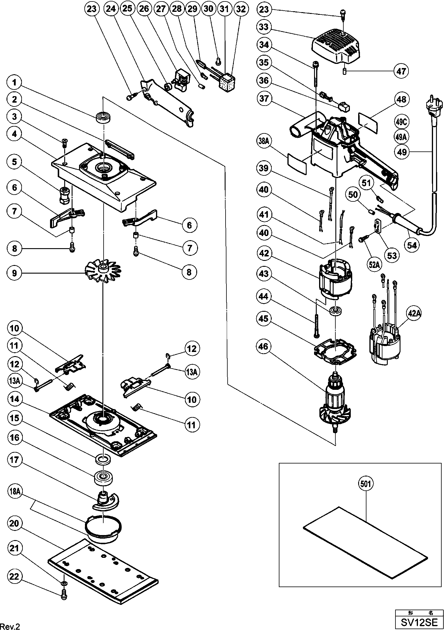 Spare parts list of model Hikoki SV12SE