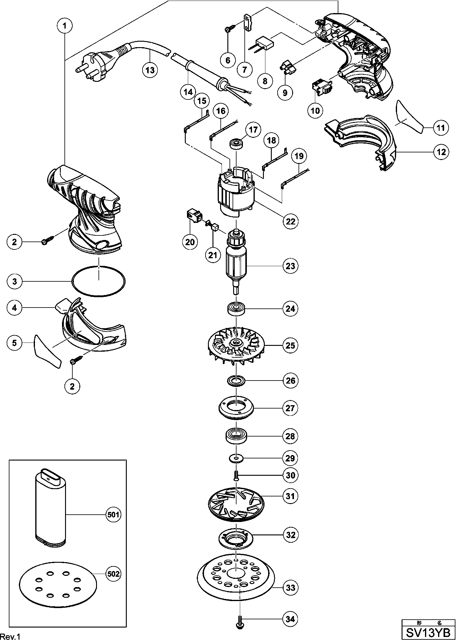 Spare parts list of model Hikoki SV13YB