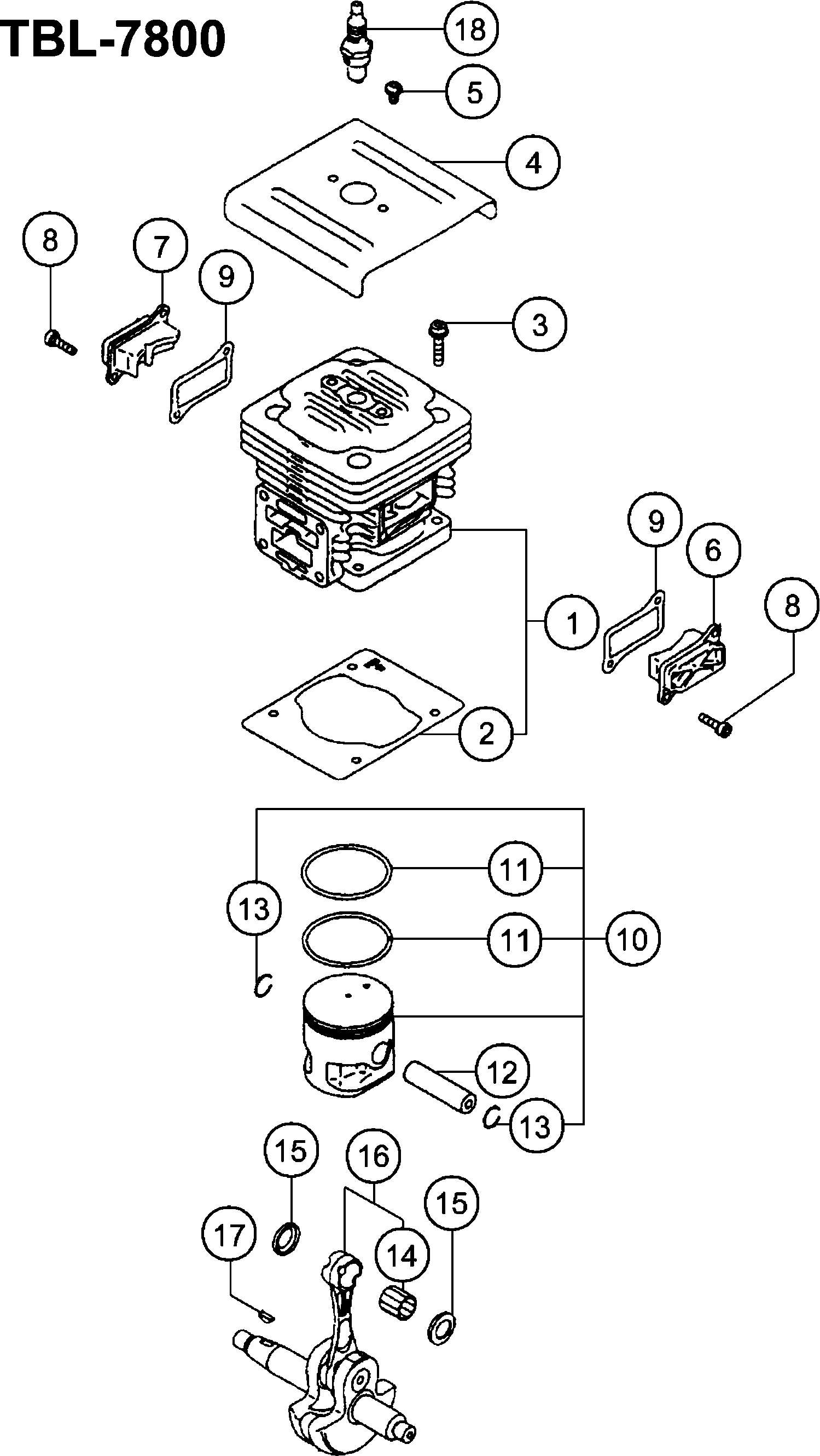 Spare parts list of model Hikoki TBL-7800