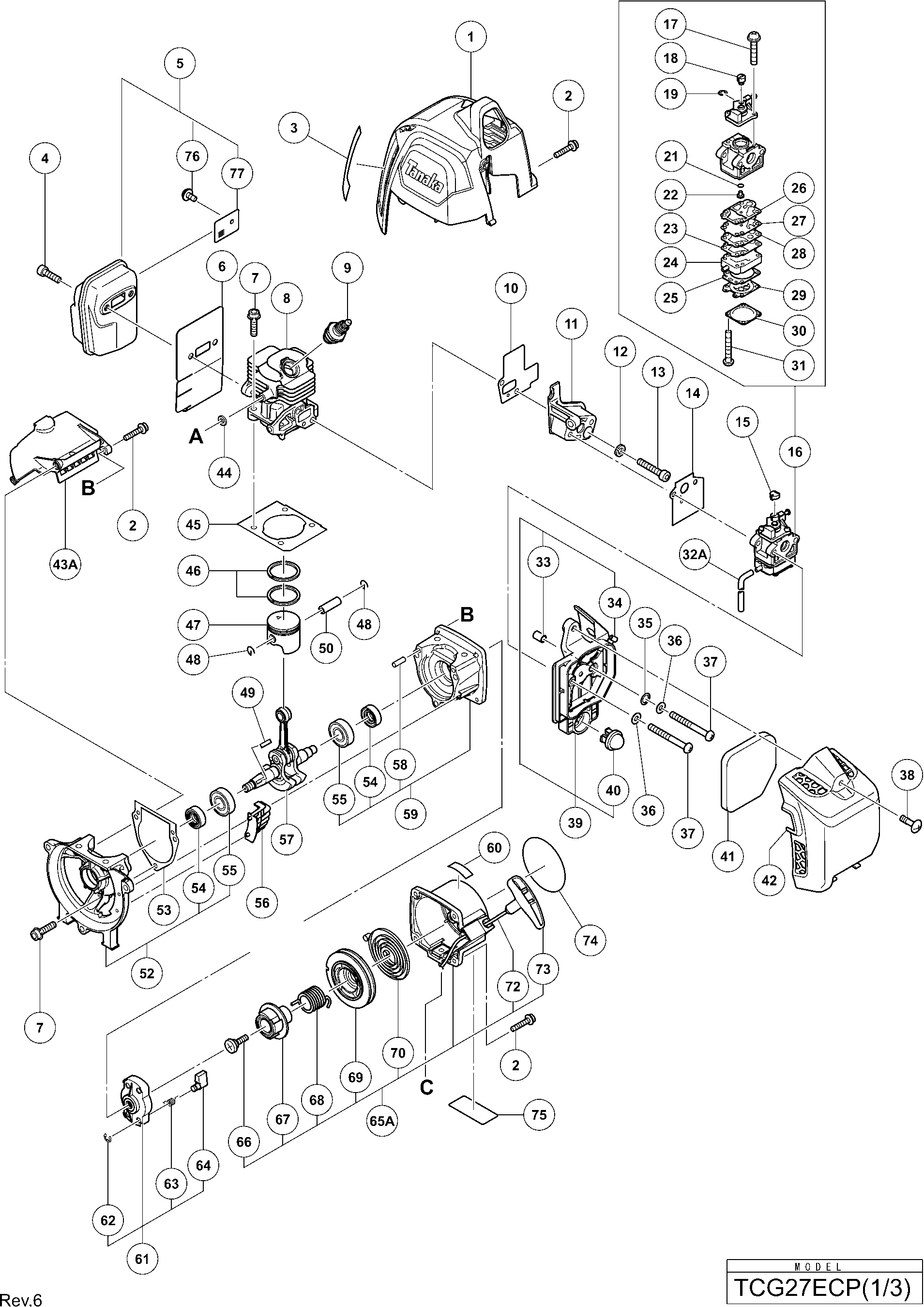 Spare parts list of model Hikoki TCG27ECP