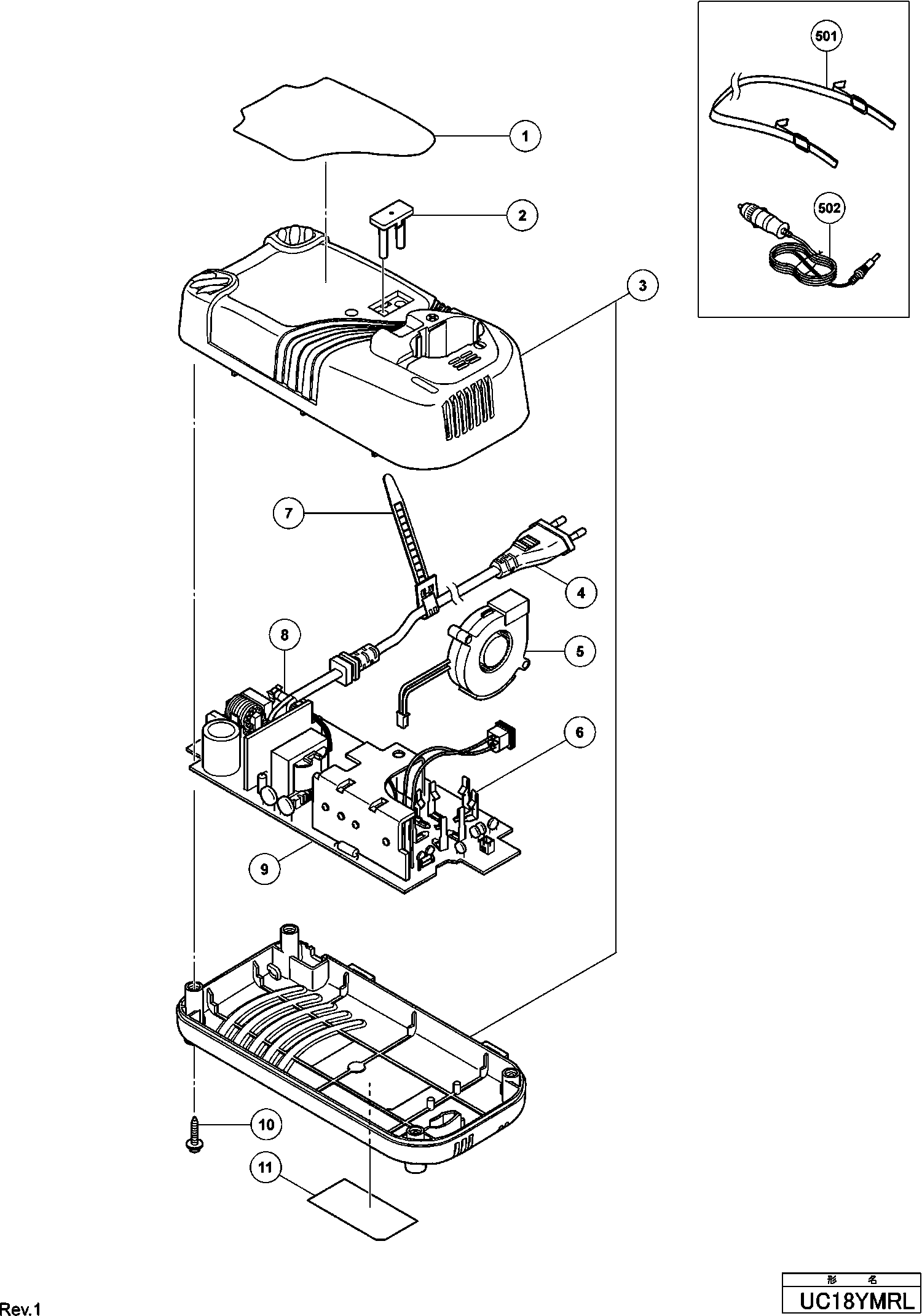 Here you will find all available parts and drawings of the 'Hikoki UC18YMRL'. From here you can order all desired parts directly. Many parts must be ordered from the manufacturer, depending on the brand, this takes one to four weeks. All the information we have is on our website, we cannot advise you on what you need, for that you will need to return the machine for repair. Please note the following when ordering: