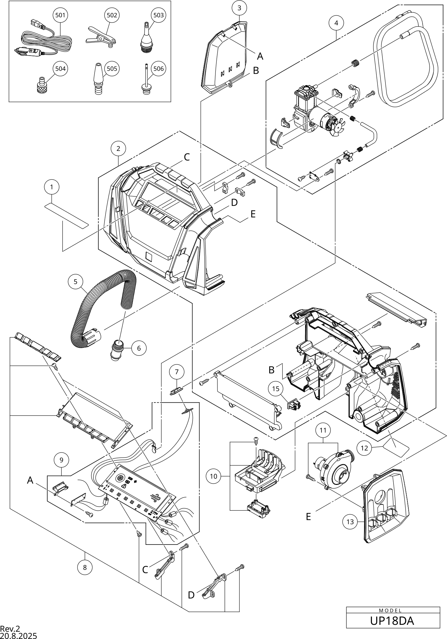 Here you will find all available parts and drawings of the 'Hikoki UP18DA'. From here you can order all desired parts directly. Many parts must be ordered from the manufacturer, depending on the brand, this takes one to four weeks. All the information we have is on our website, we cannot advise you on what you need, for that you will need to return the machine for repair. Please note the following when ordering: