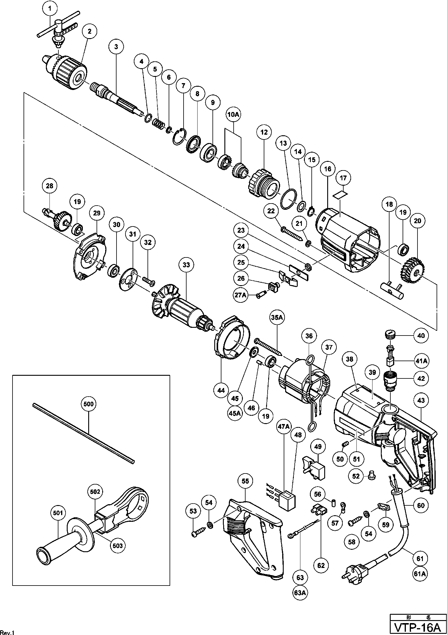 Here you will find all available parts and drawings of the 'Hikoki VTP-16A'. From here you can order all desired parts directly. Many parts must be ordered from the manufacturer, depending on the brand, this takes one to four weeks. All the information we have is on our website, we cannot advise you on what you need, for that you will need to return the machine for repair. Please note the following when ordering: