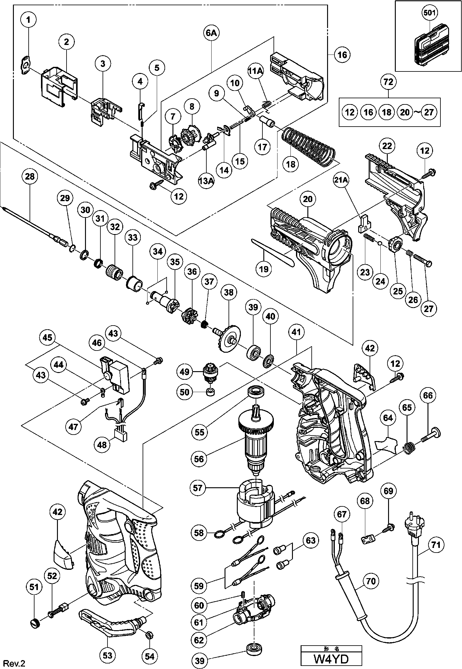 Spare parts list of model Hikoki W4YD