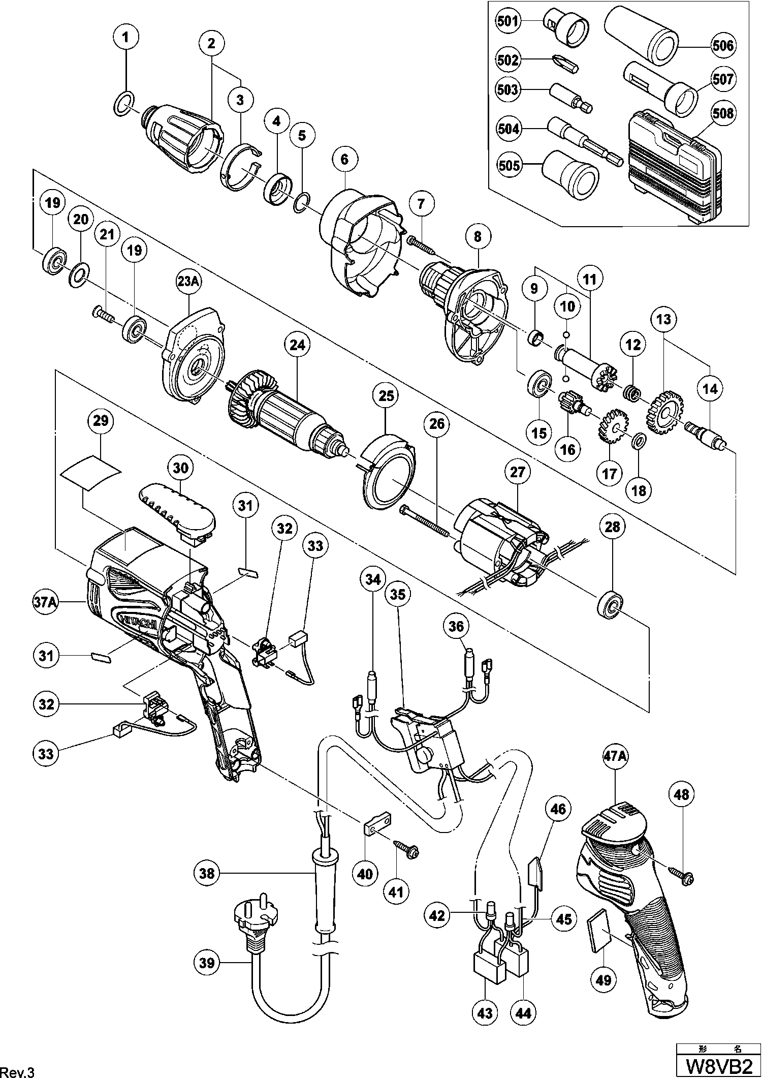Spare parts list of model Hikoki W8VB2
