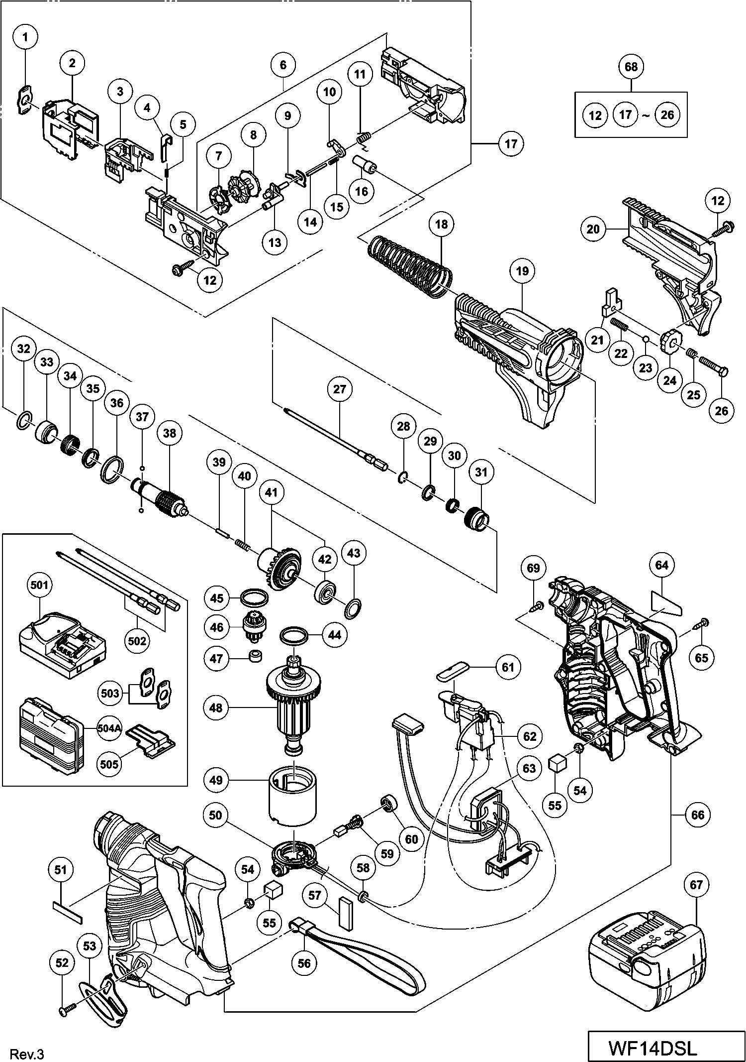 Spare parts list of model Hikoki WF14DSL