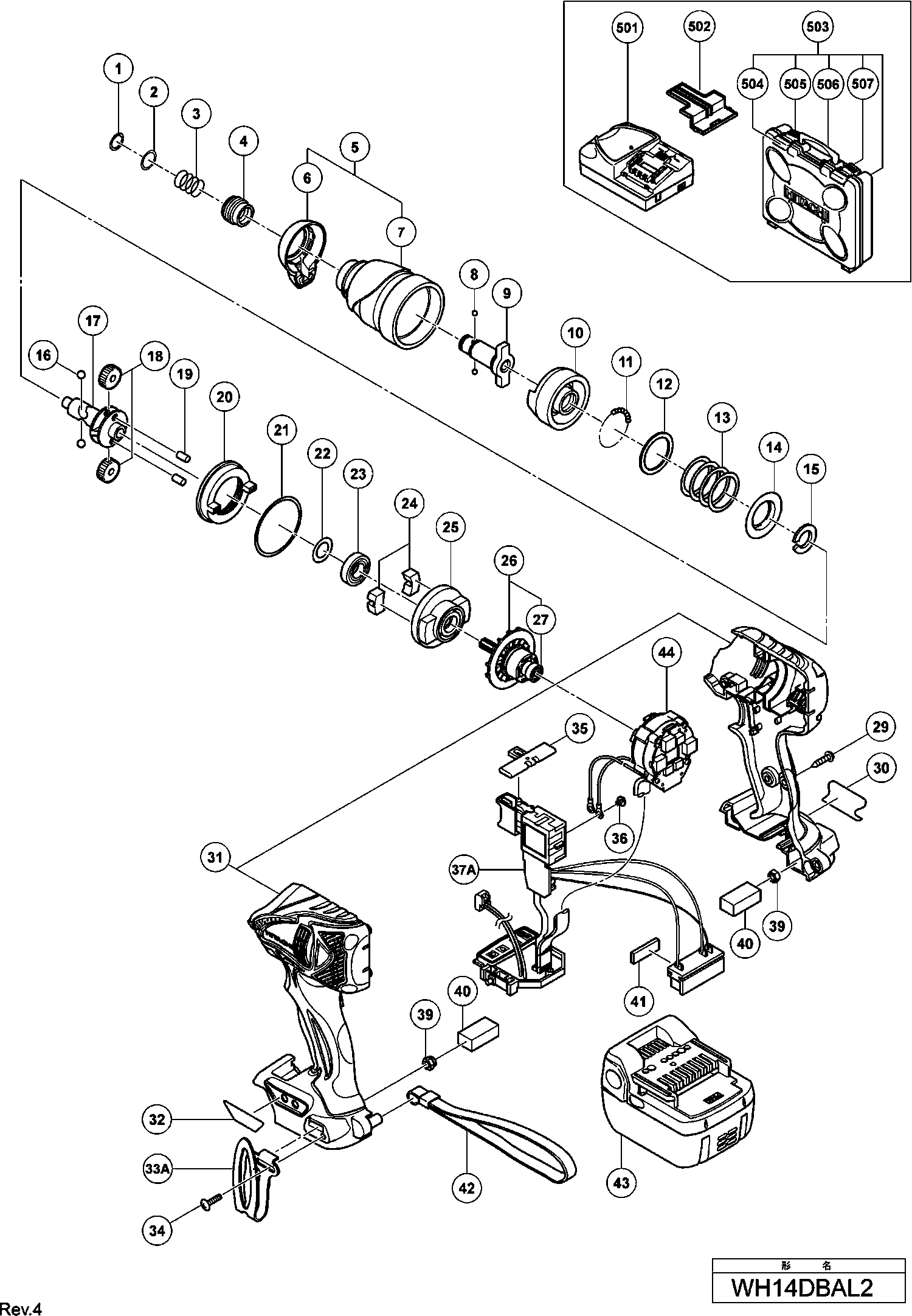 Here you will find all available parts and drawings of the 'Hikoki WH14DBAL2'. From here you can order all desired parts directly. Many parts must be ordered from the manufacturer, depending on the brand, this takes one to four weeks. All the information we have is on our website, we cannot advise you on what you need, for that you will need to return the machine for repair. Please note the following when ordering: