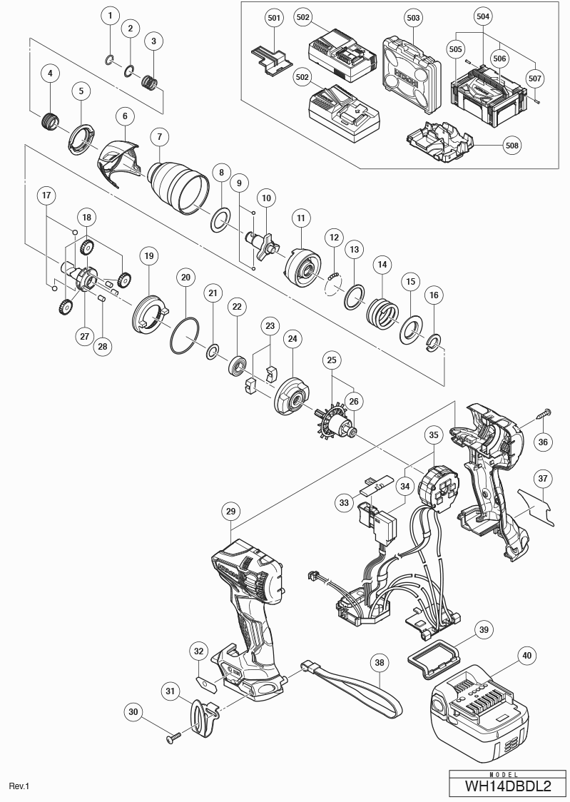 Here you will find all available parts and drawings of the 'Hikoki WH14DBDL2'. From here you can order all desired parts directly. Many parts must be ordered from the manufacturer, depending on the brand, this takes one to four weeks. All the information we have is on our website, we cannot advise you on what you need, for that you will need to return the machine for repair. Please note the following when ordering: