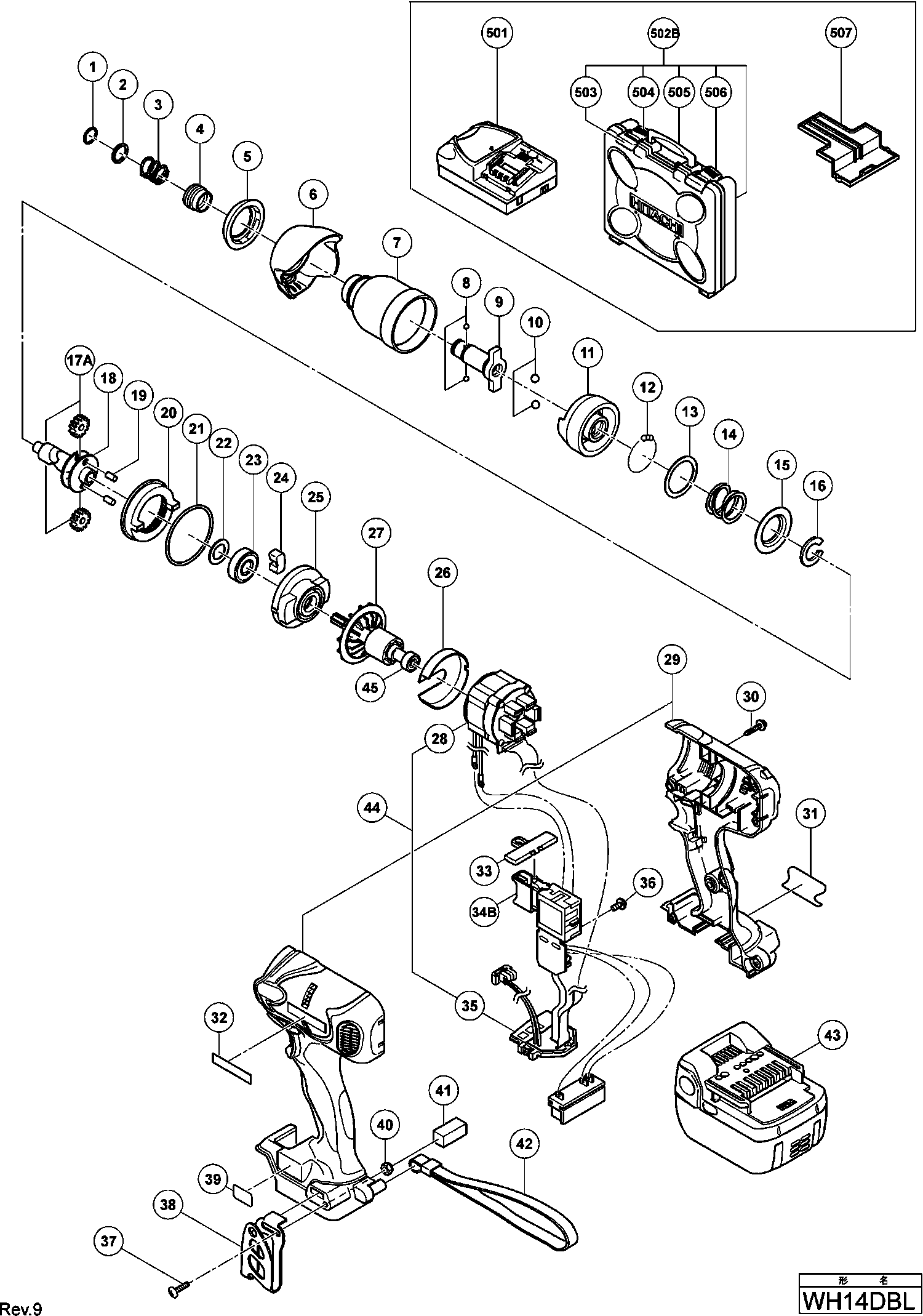 Spare parts list of model Hikoki WH14DBL