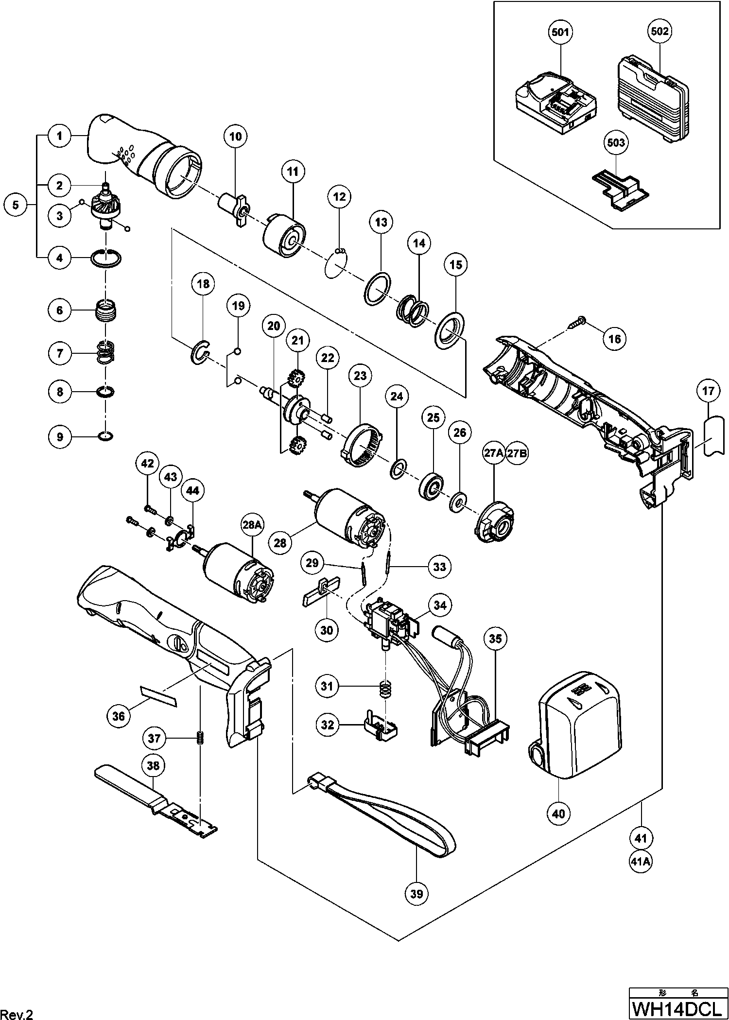 Spare parts list of model Hikoki WH14DCL