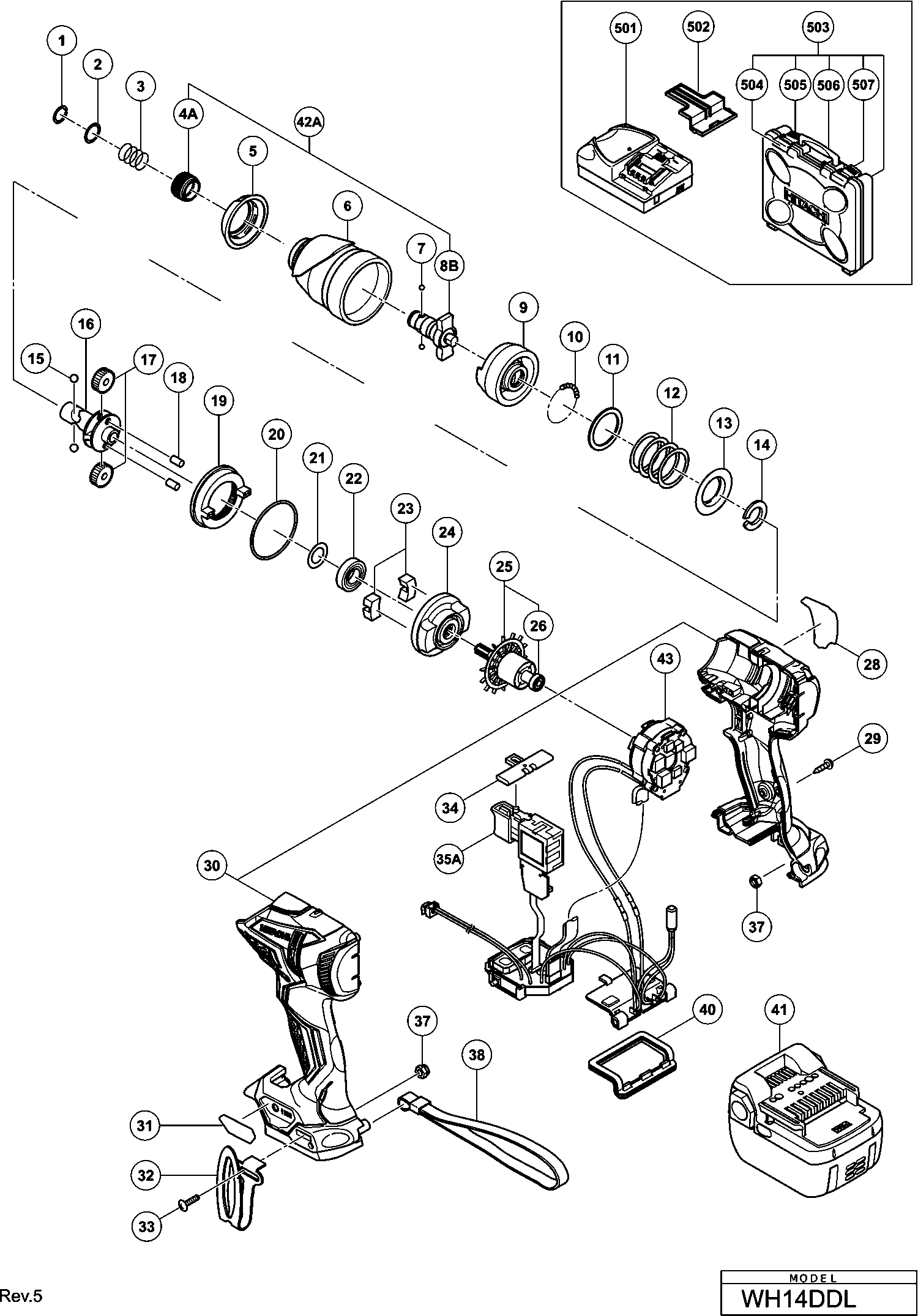 Spare parts list of model Hikoki WH14DDL