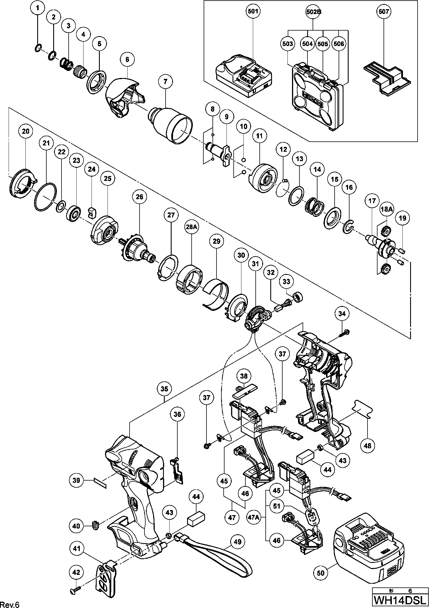 Here you will find all available parts and drawings of the 'Hikoki WH14DSL'. From here you can order all desired parts directly. Many parts must be ordered from the manufacturer, depending on the brand, this takes one to four weeks. All the information we have is on our website, we cannot advise you on what you need, for that you will need to return the machine for repair. Please note the following when ordering: