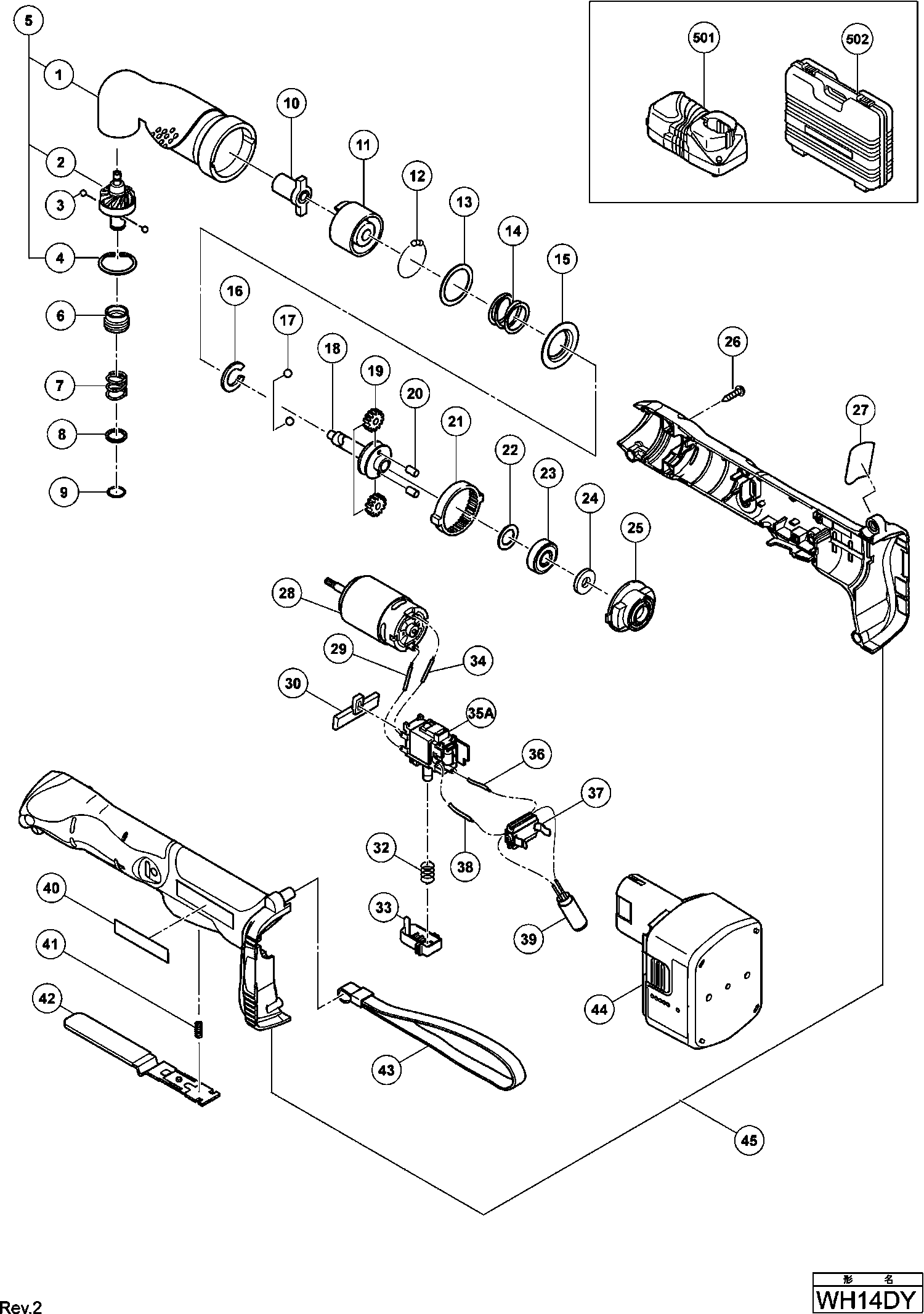 Spare parts list of model Hikoki WH14DY
