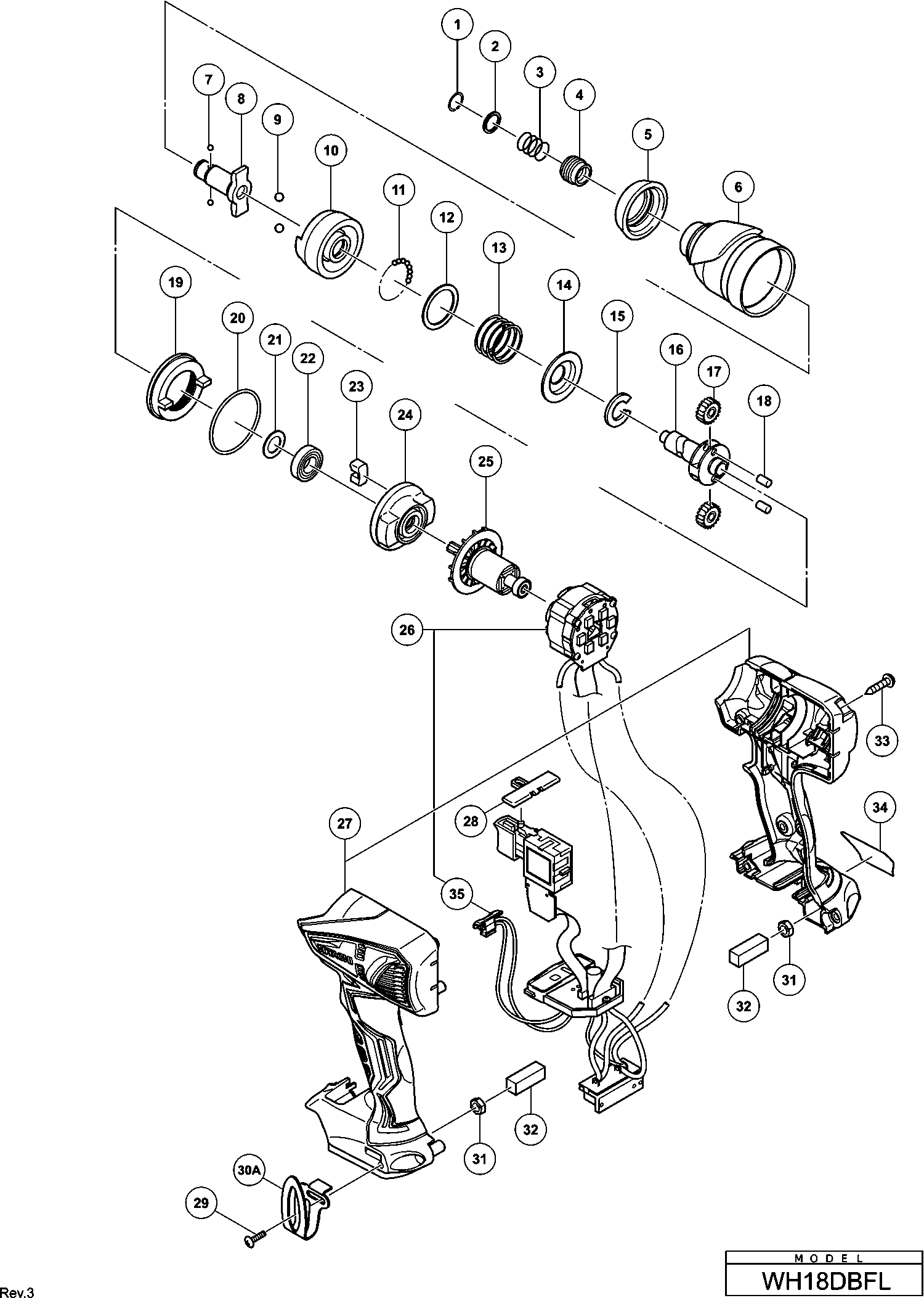 Spare parts list of model Hikoki WH18DBFL