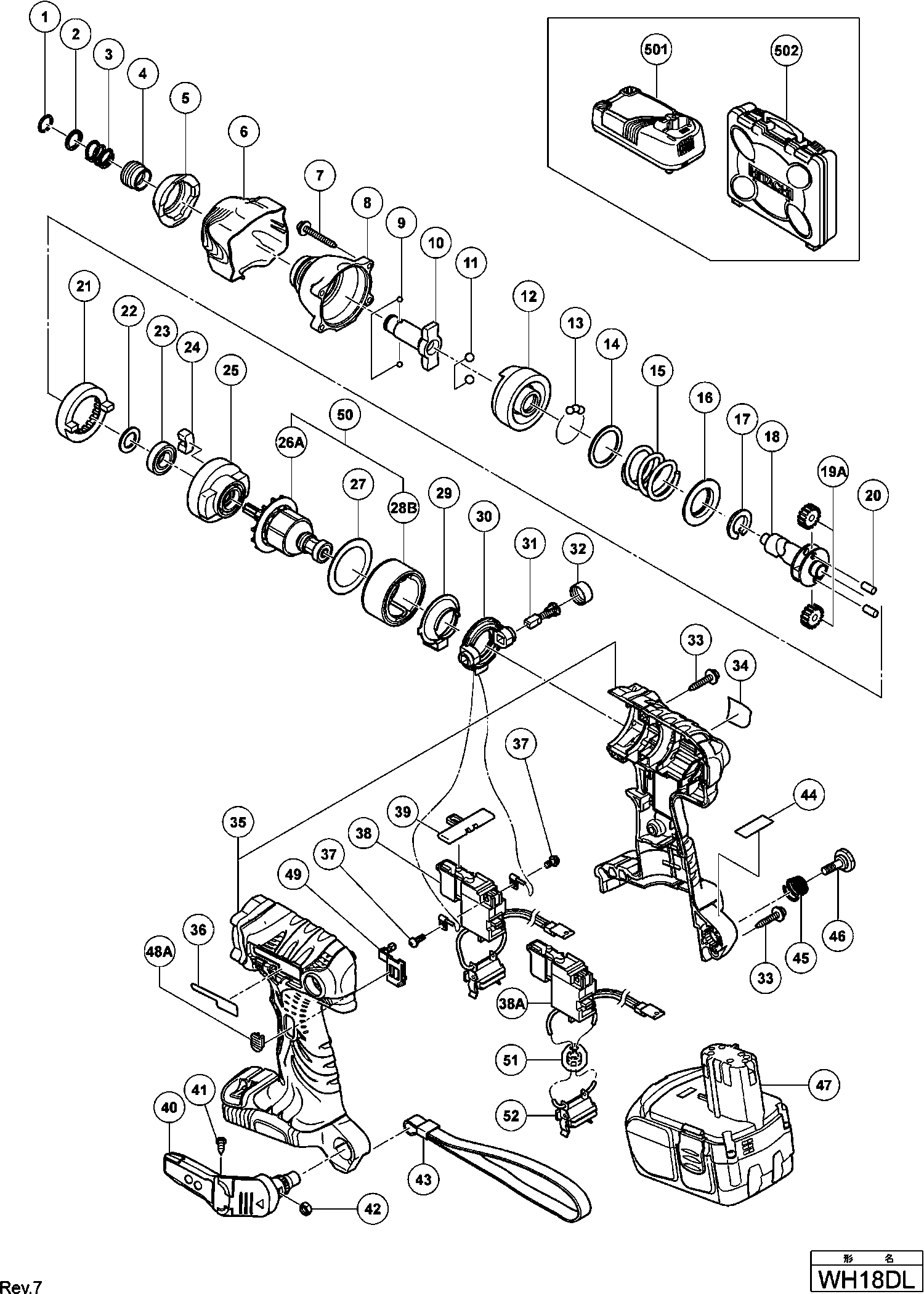Spare parts list of model Hikoki WH18DL