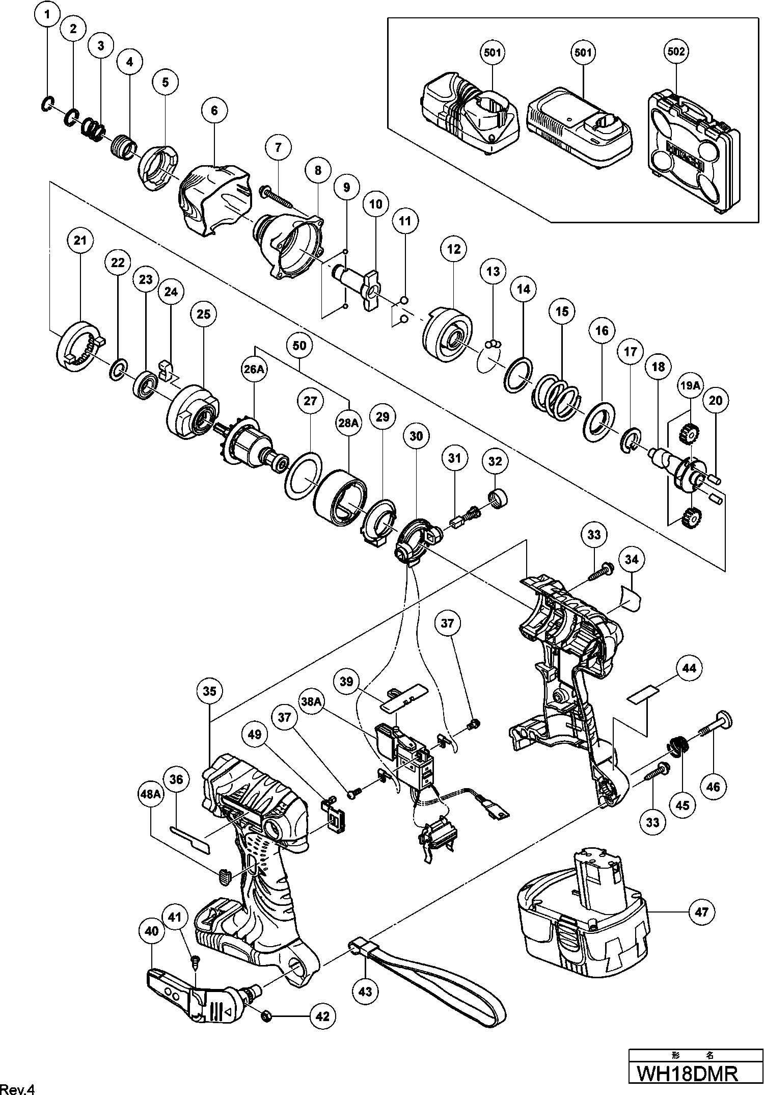 Spare parts list of model Hikoki WH18DMR