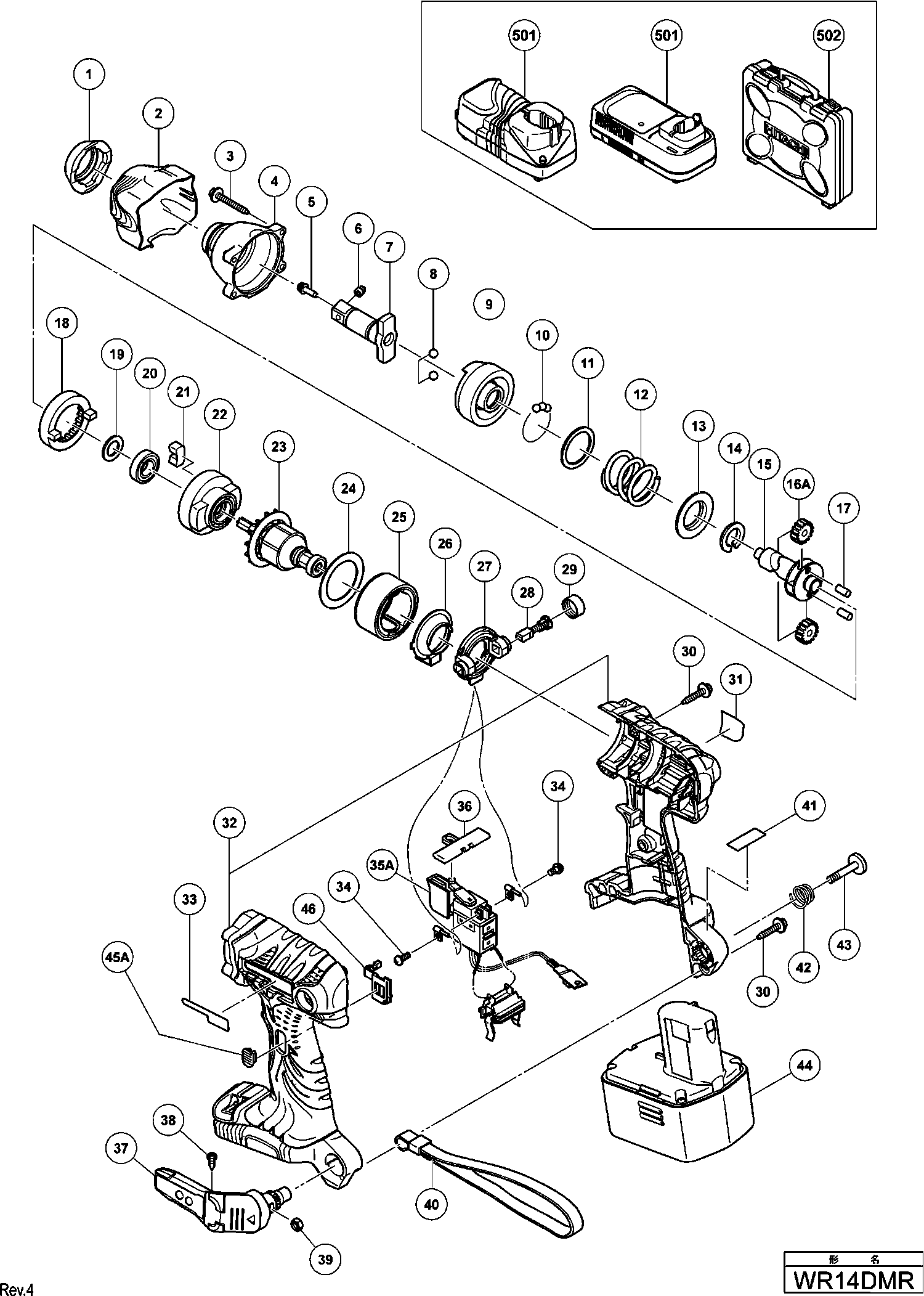 Spare parts list of model Hikoki WR14DMR