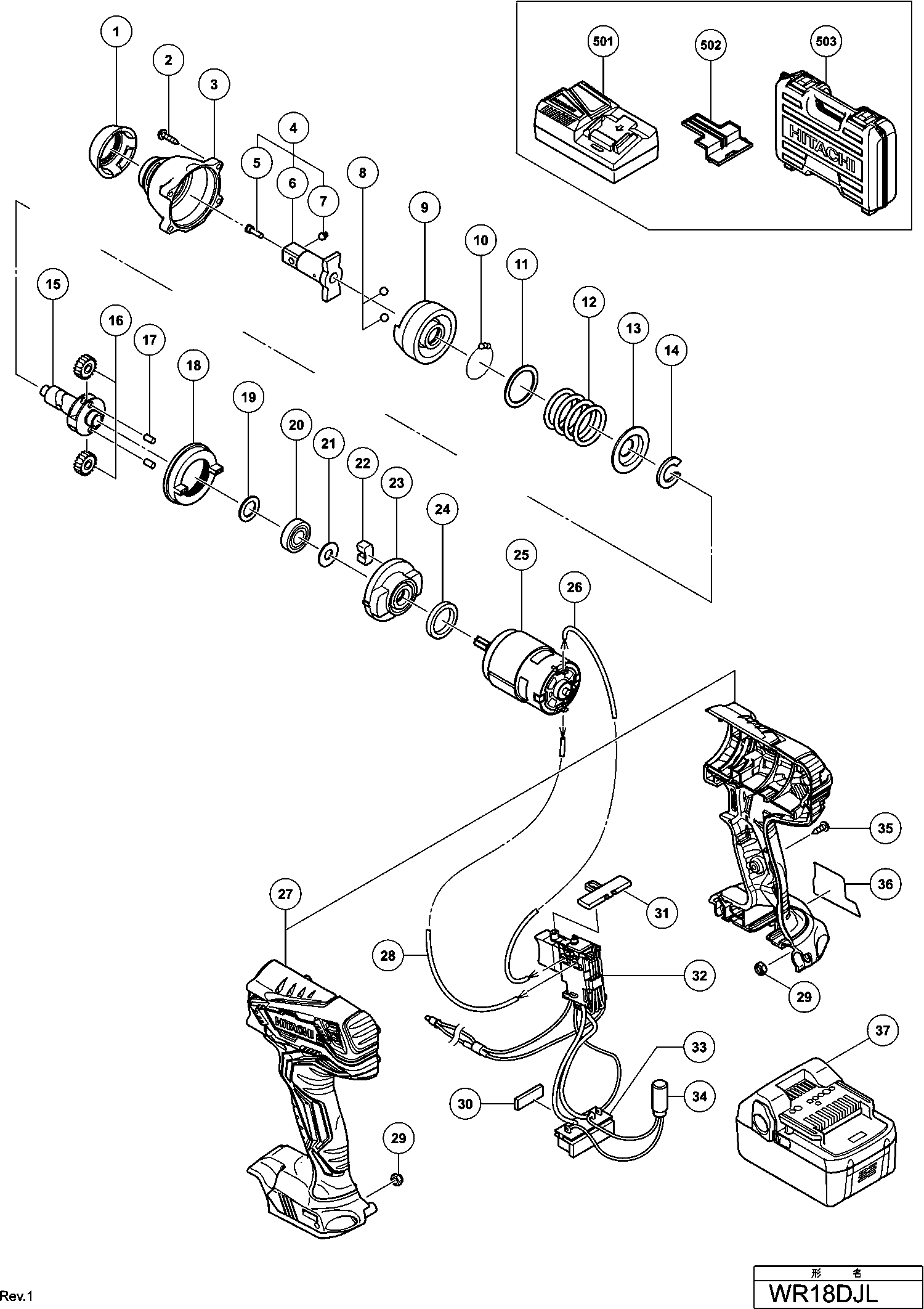 Spare parts list of model Hikoki WR18DJL