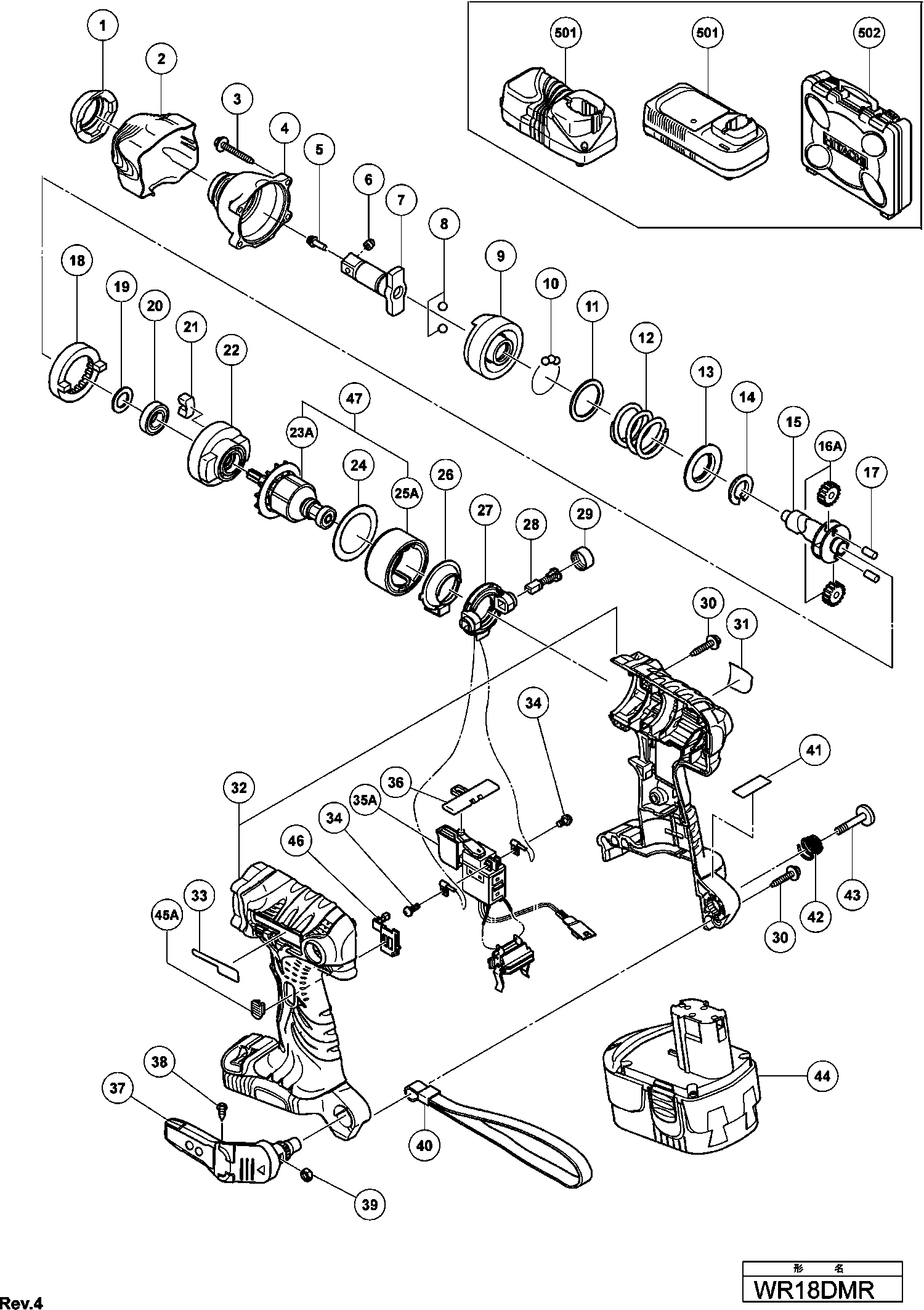 Spare parts list of model Hikoki WR18DMR
