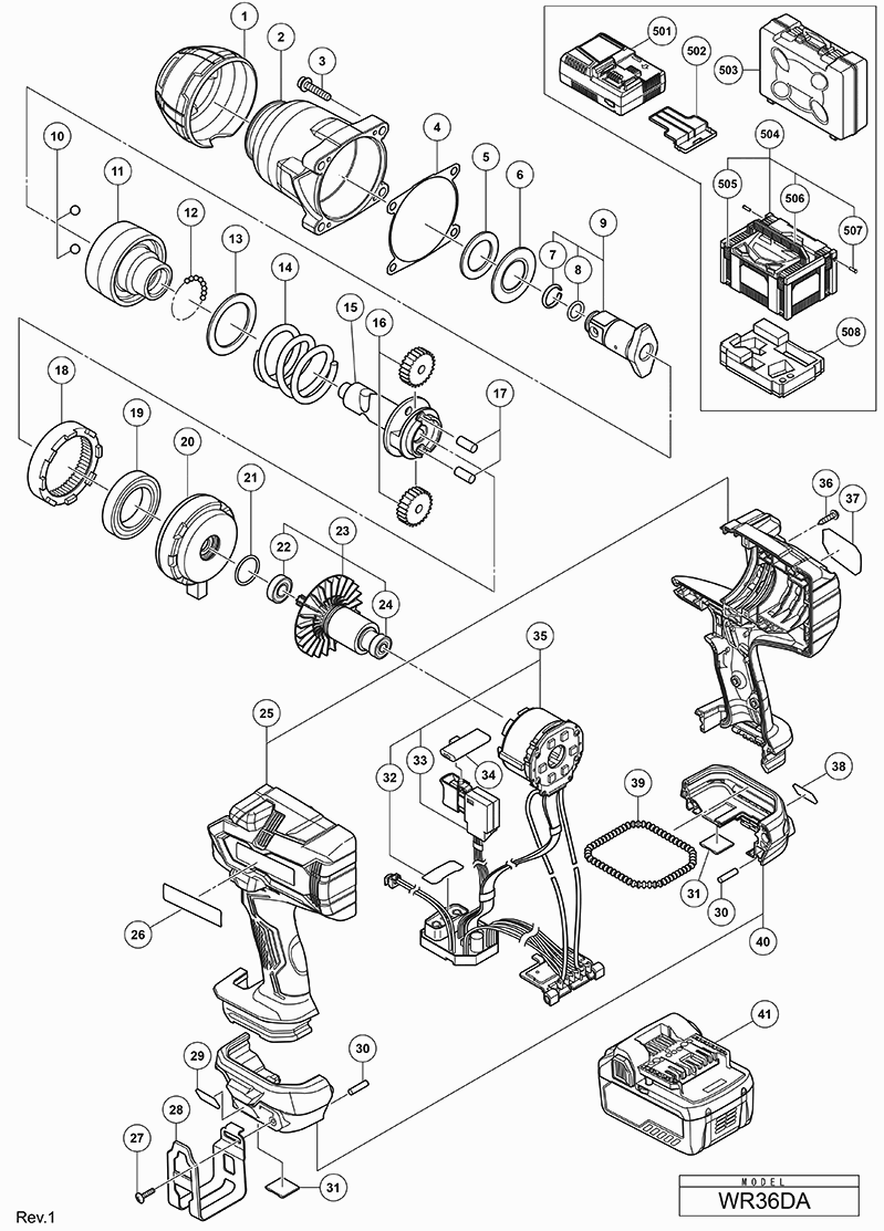 Here you will find all available parts and drawings of the 'Hikoki WR36DAWRZ'. From here you can order all desired parts directly. Many parts must be ordered from the manufacturer, depending on the brand, this takes one to four weeks. All the information we have is on our website, we cannot advise you on what you need, for that you will need to return the machine for repair. Please note the following when ordering: