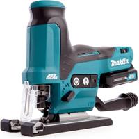 Uiterst lichte en compacte accuwipzaag met pendelbeweging, ideaal voor het zagen van kleine uitsparingen in plaatmaterialen en massief hout van beperkte dikte. Solide voetplaat in persgietaluminium met plaatstalen inleg, tot 45° kantelbaar naar beide zijden voor het maken van versteksnedes. Geïntegreerd afzuigkanaal voor aansluiting van een stofzuiger. Geleverd met lader en twee 10,8V Li-ion schuifaccu's met diepontlaadbeveiliging en individuele celbewaking tijdens het laadproces. Geleverd in een stevige, stapelbare opbergkoffer in ABS met versterkingsribben, met vergrendelsysteem om meerdere koffers met elkaar te verbinden.