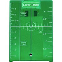 Laserrichtplaat voor groene lasers, verbetert de zichtbaarheid van de laserstraal. Hij is magnetisch, voorzien van een standaard en heeft een empirische / metrische meetschaal.