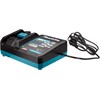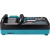 Compacte snellader speciaal ontwikkeld voor XGT 40 V Max Li-ion accu's. Middels de optionele laadadapter ADP10 is de oplader ook geschikt om LXT 14,4 V en 18 V accu's snel te laden. De machines, accu's en oplader van het XGT-platform zijn standaard voorzien van elektronica, waardoor deze met elkaar kunnen communiceren. De oplader geeft de meest geoptimaliseerde oplading aan de accu afhankelijk van de status van de accu. De lader is tevens voorzien van twee ventilatoren: één om de accu geforceerd te koelen en één om het laadcircuit te koelen. Door deze technieken te combineren worden hoge temperaturen in de accu en lader voorkomen, waardoor de levensduur van de accu verlengd wordt en het laadproces aanzienlijk versneld. Resultaat: een optimaal laadsysteem. De XGT 40 V Max Li-ion accu's met een inhoud van 2,5 en 4,0 Ah zijn respectievelijk in 28 en 45 minuten weer volledig geladen. In combinatie met de ADP10 zijn LXT accu's ook sneller te laden dan met de LXT snelladers. Zo is een 6,0 Ah LXT accu binnen 40 minuten weer volledig geladen, tegenover 55 minuten met een LXT snellader. Pure tijdswinst. De lader is ook te bevestigen aan een wand.