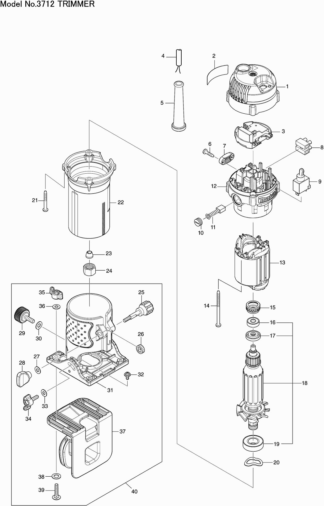 Here you will find all available parts and drawings of the 'Makita 3712'. From here you can order all desired parts directly. Many parts must be ordered from the manufacturer, depending on the brand, this takes one to four weeks. All the information we have is on our website, we cannot advise you on what you need, for that you will need to return the machine for repair. Please note the following when ordering: