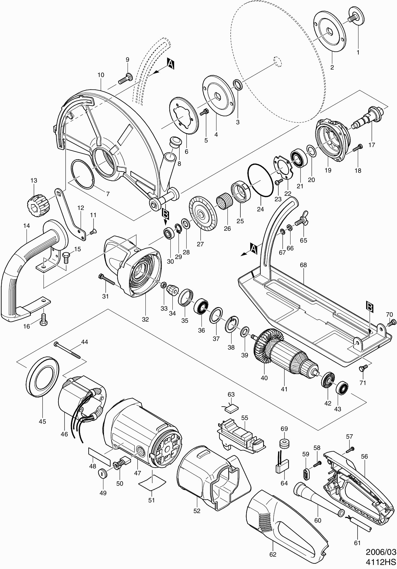 Technical drawing of model Makita 4112HS