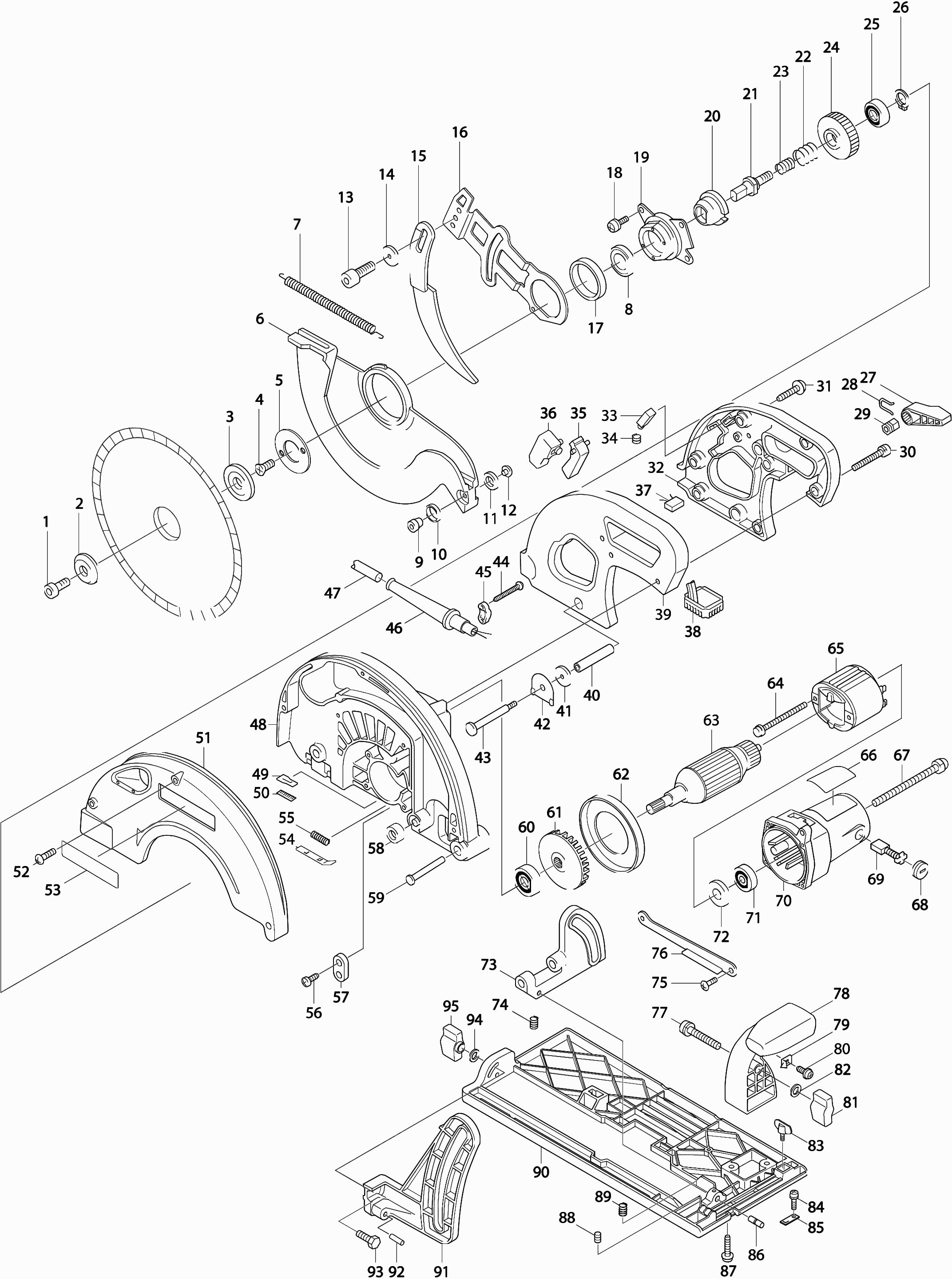 Here you will find all available parts and drawings of the 'Makita 5103R'. From here you can order all desired parts directly. Many parts must be ordered from the manufacturer, depending on the brand, this takes one to four weeks. All the information we have is on our website, we cannot advise you on what you need, for that you will need to return the machine for repair. Please note the following when ordering: