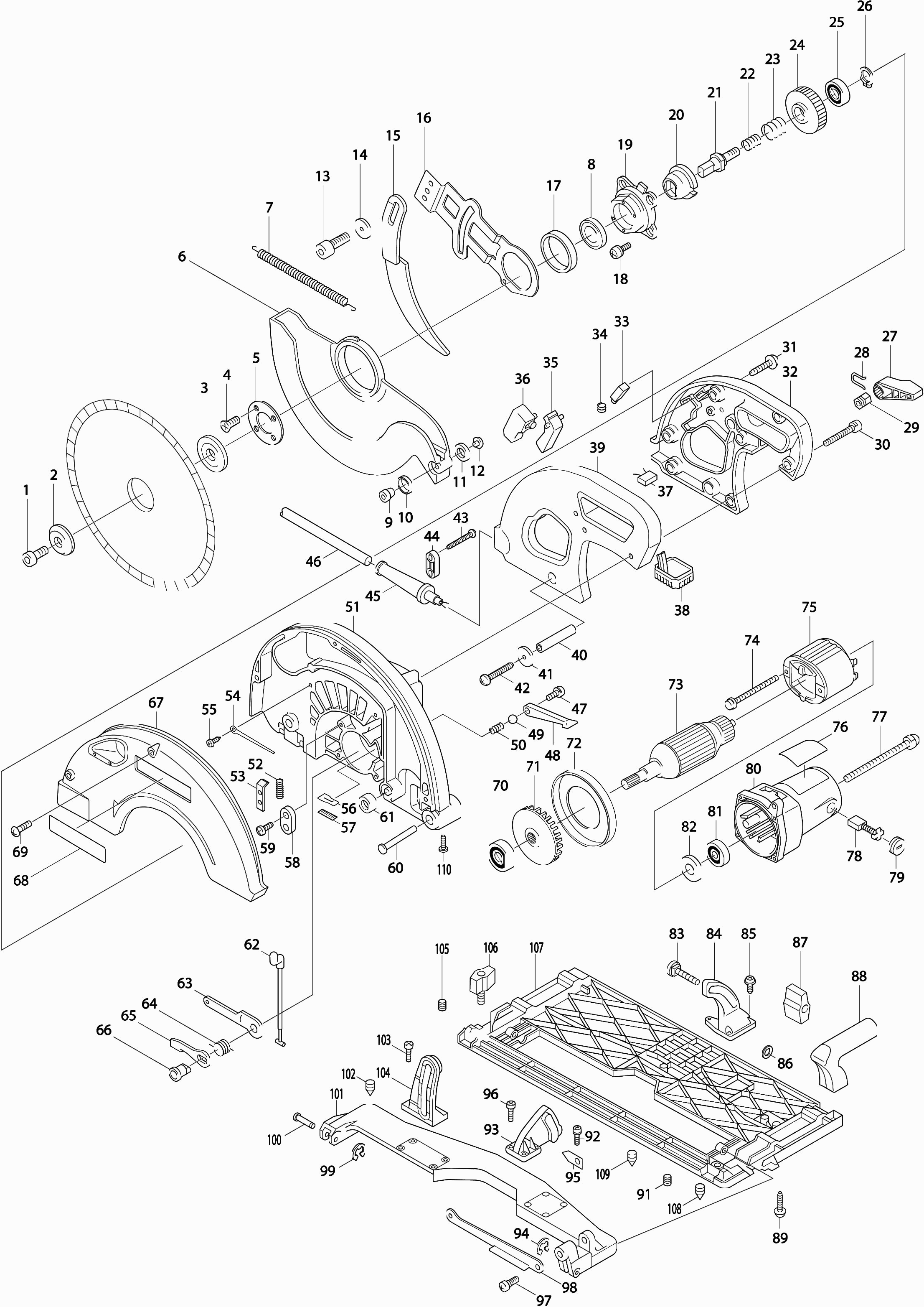 Here you will find all available parts and drawings of the 'Makita 5143R'. From here you can order all desired parts directly. Many parts must be ordered from the manufacturer, depending on the brand, this takes one to four weeks. All the information we have is on our website, we cannot advise you on what you need, for that you will need to return the machine for repair. Please note the following when ordering:
