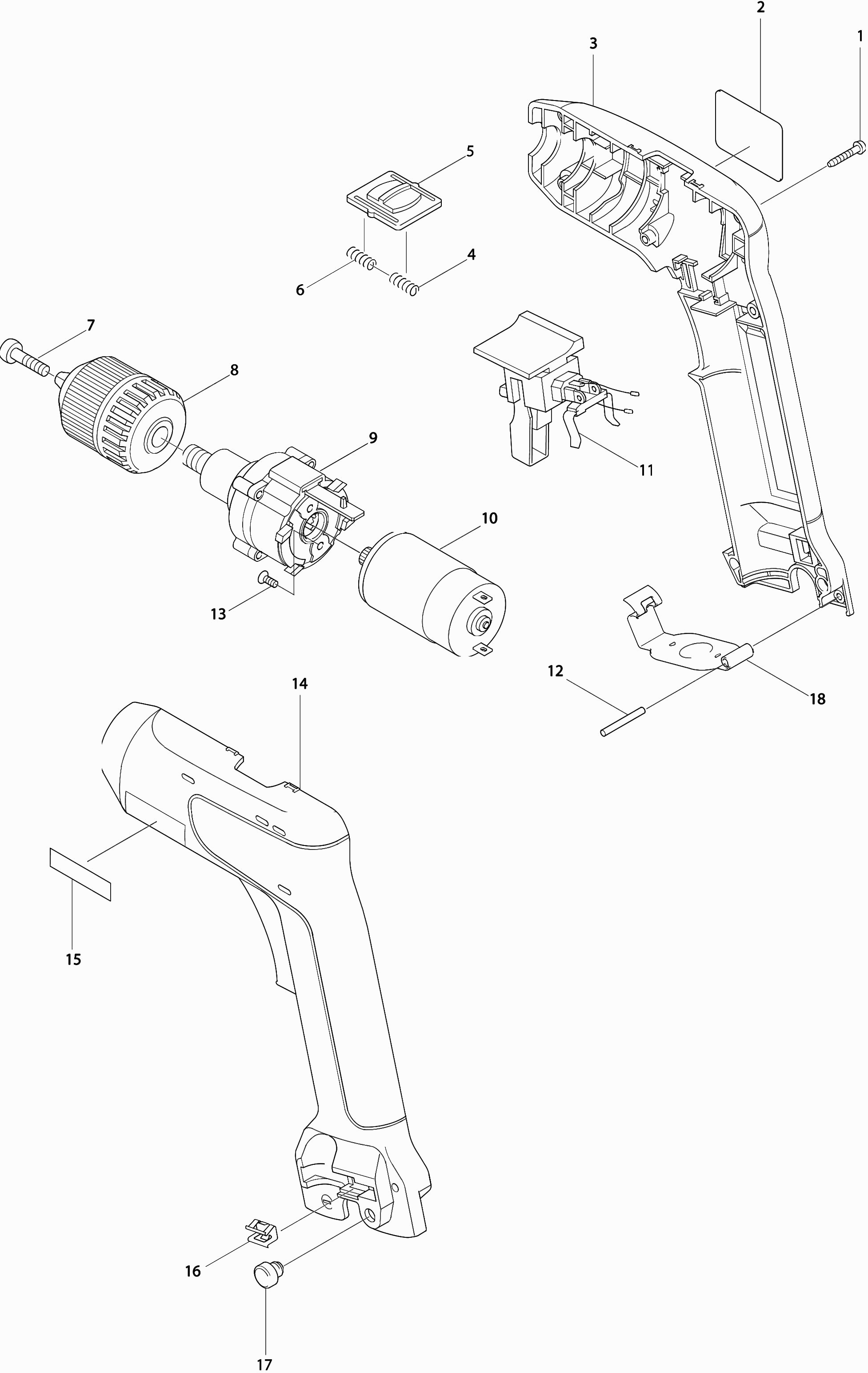 Technical drawing of model Makita 6018D
