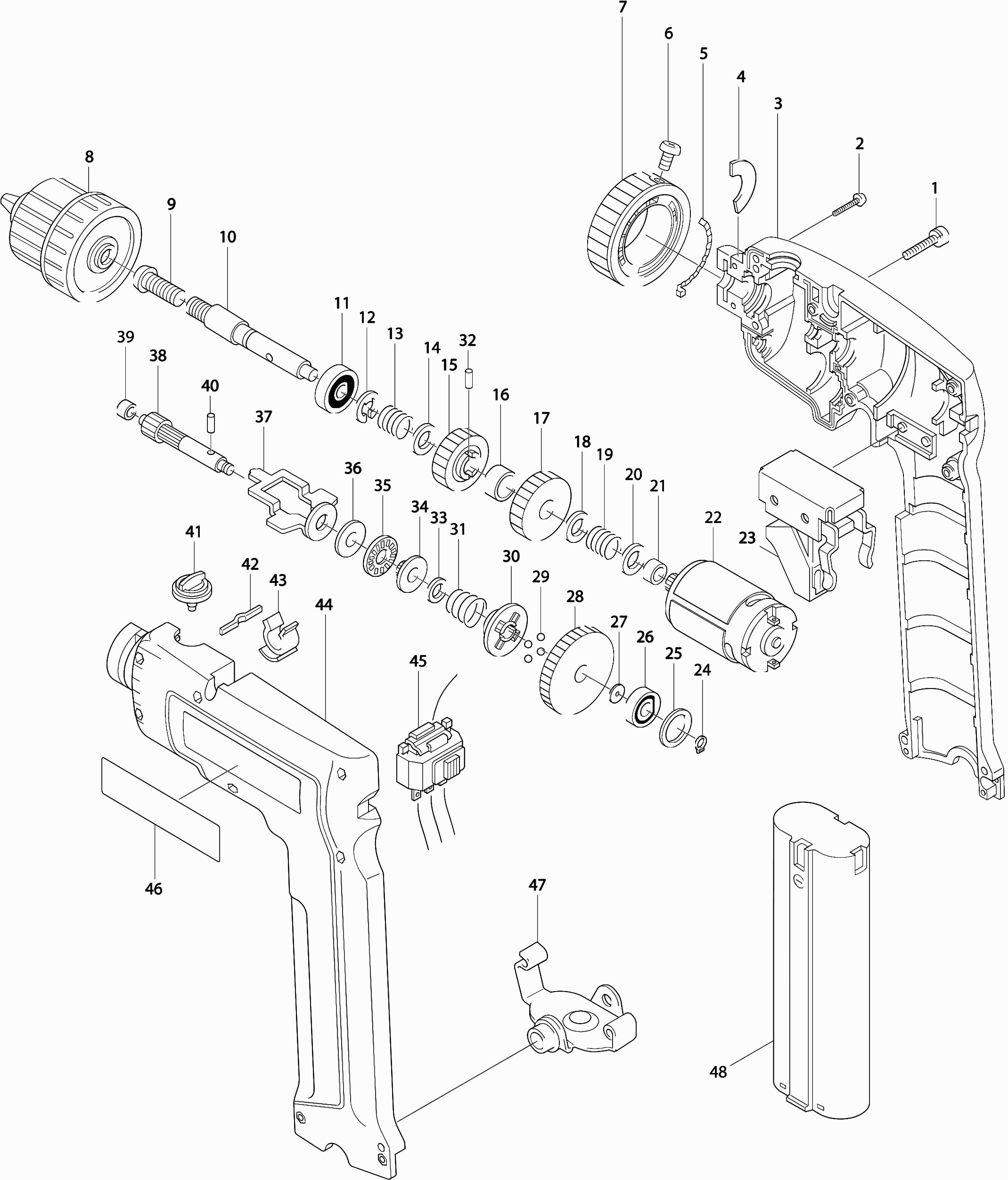 Here you will find all available parts and drawings of the 'Makita 6075D'. From here you can order all desired parts directly. Many parts must be ordered from the manufacturer, depending on the brand, this takes one to four weeks. All the information we have is on our website, we cannot advise you on what you need, for that you will need to return the machine for repair. Please note the following when ordering: