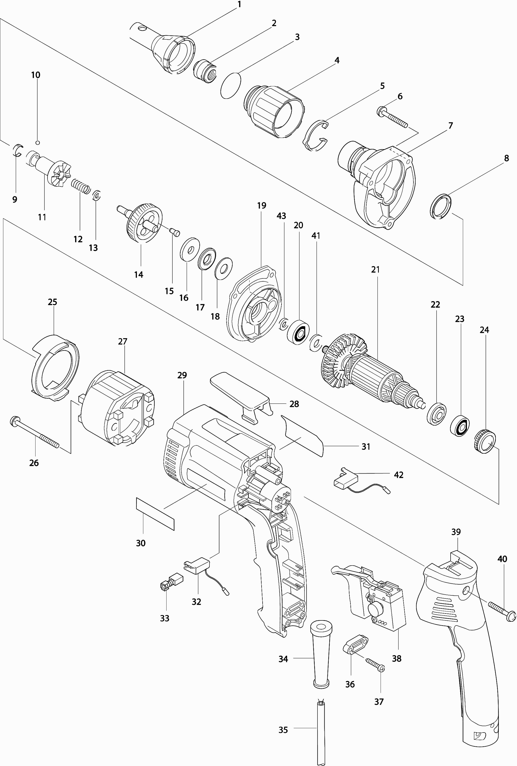 Here you will find all available parts and drawings of the 'Makita 6825'. From here you can order all desired parts directly. Many parts must be ordered from the manufacturer, depending on the brand, this takes one to four weeks. All the information we have is on our website, we cannot advise you on what you need, for that you will need to return the machine for repair. Please note the following when ordering: