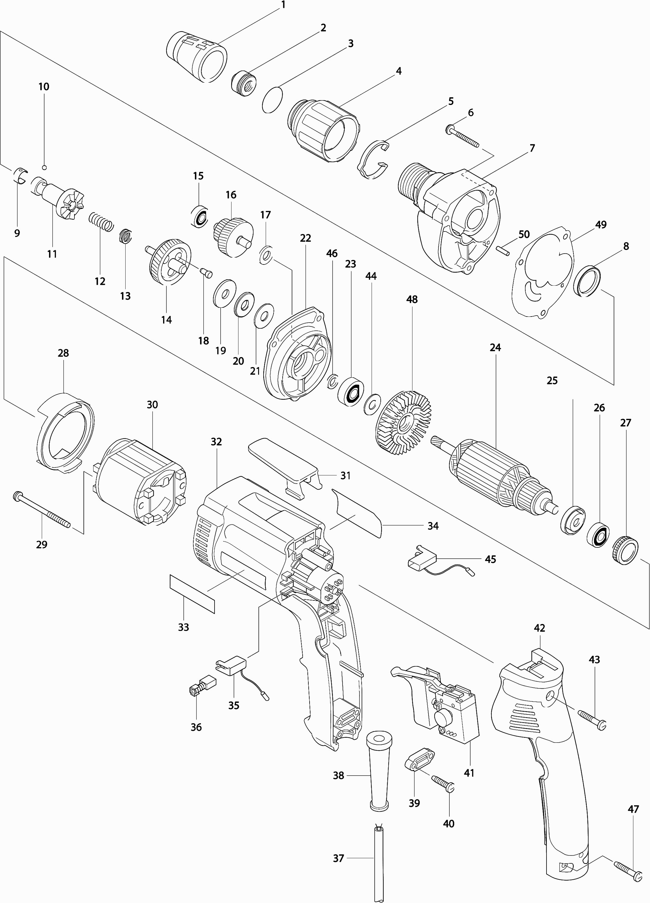 Here you will find all available parts and drawings of the 'Makita 6826'. From here you can order all desired parts directly. Many parts must be ordered from the manufacturer, depending on the brand, this takes one to four weeks. All the information we have is on our website, we cannot advise you on what you need, for that you will need to return the machine for repair. Please note the following when ordering: