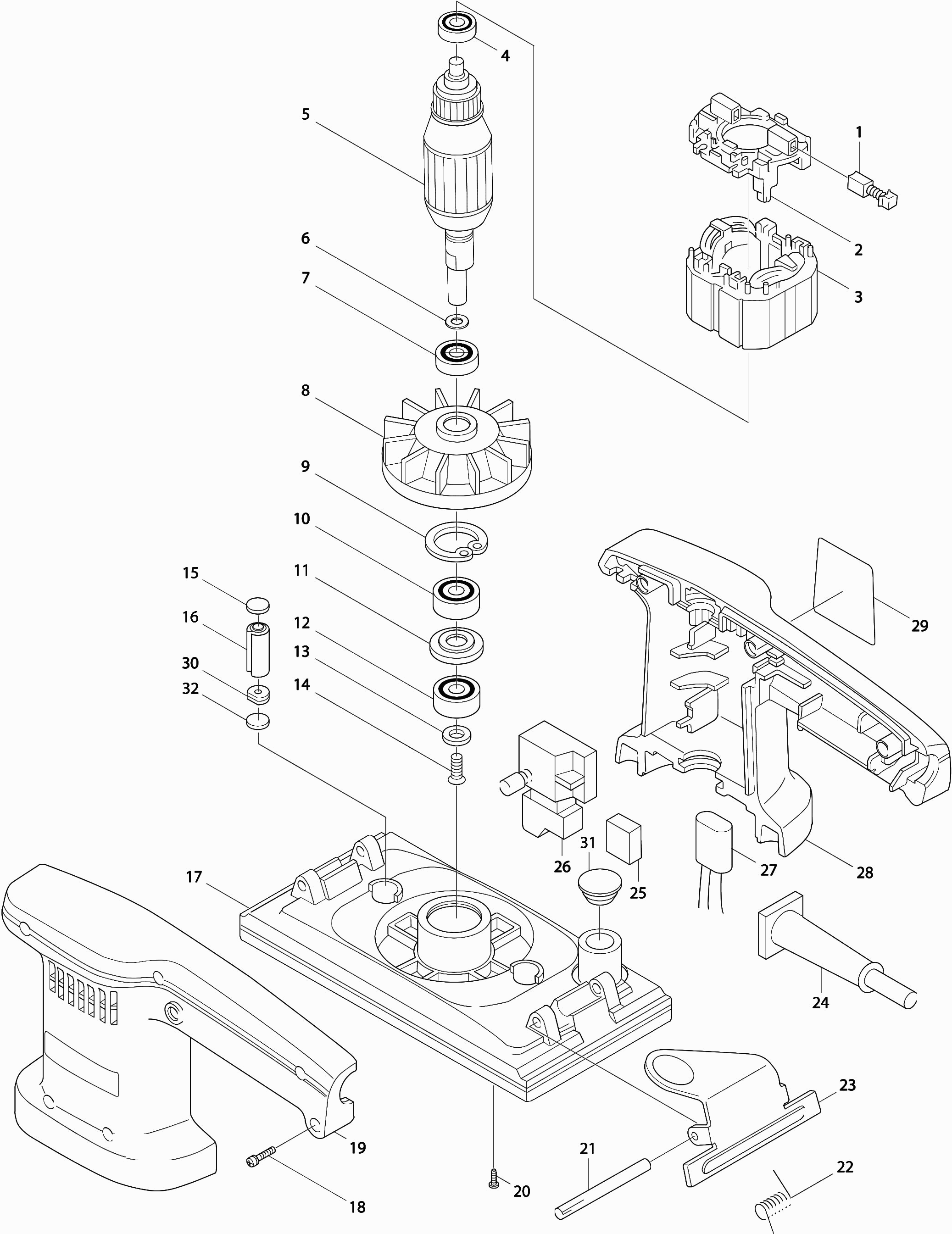 Here you will find all available parts and drawings of the 'Makita 9036'. From here you can order all desired parts directly. Many parts must be ordered from the manufacturer, depending on the brand, this takes one to four weeks. All the information we have is on our website, we cannot advise you on what you need, for that you will need to return the machine for repair. Please note the following when ordering: