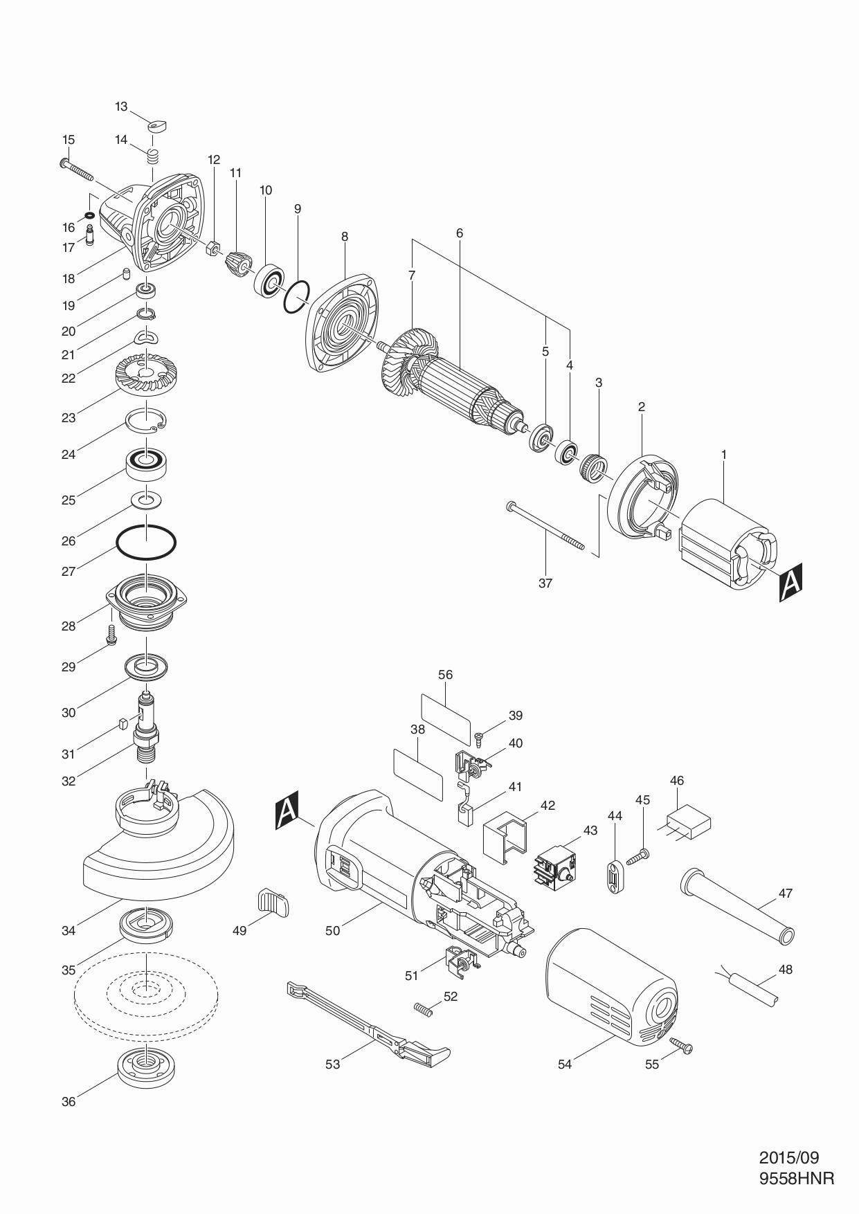 Technical drawing of model Makita 9558HNR