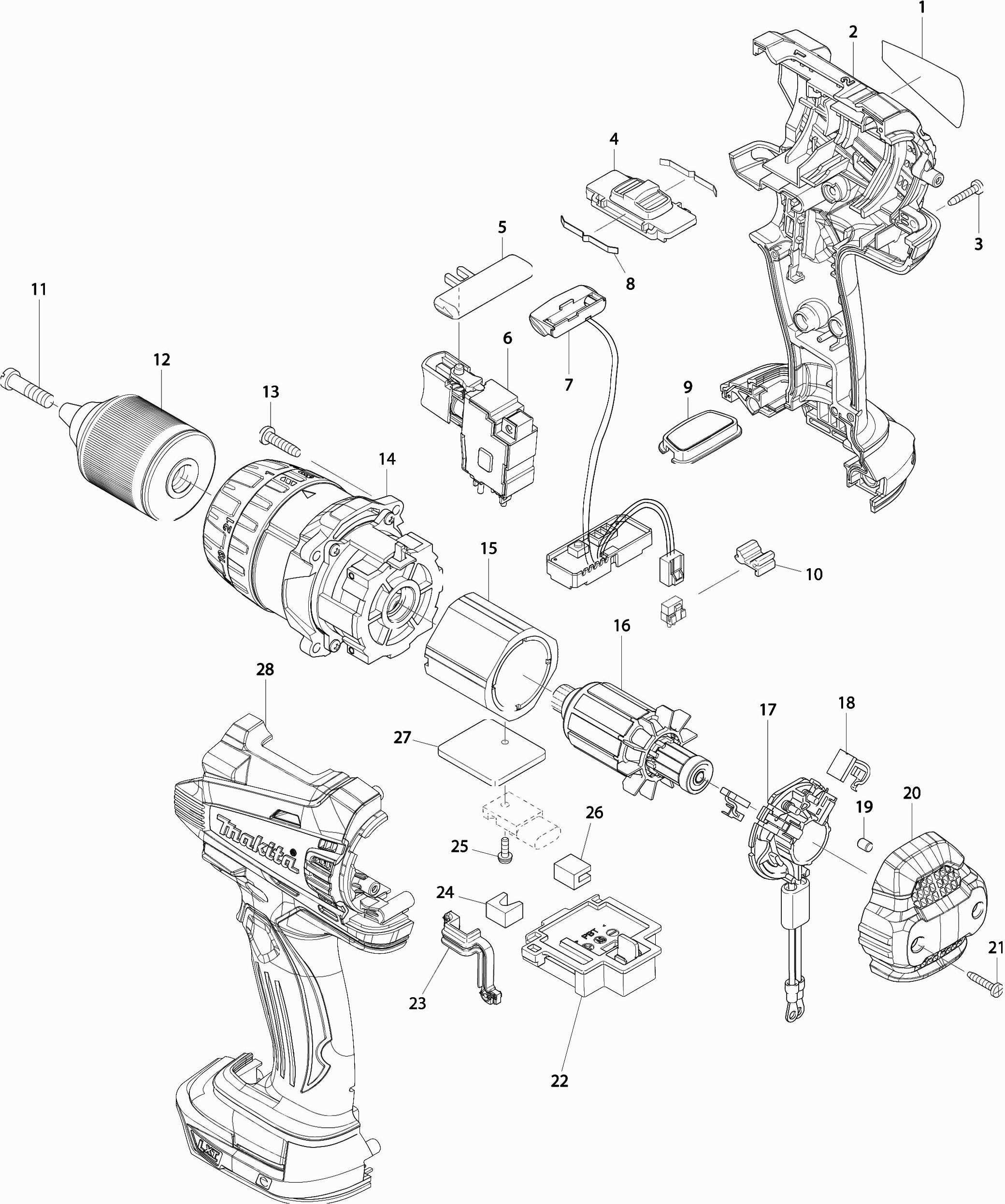 Here you will find all available parts and drawings of the 'Makita BDF448'. From here you can order all desired parts directly. Many parts must be ordered from the manufacturer, depending on the brand, this takes one to four weeks. All the information we have is on our website, we cannot advise you on what you need, for that you will need to return the machine for repair. Please note the following when ordering: