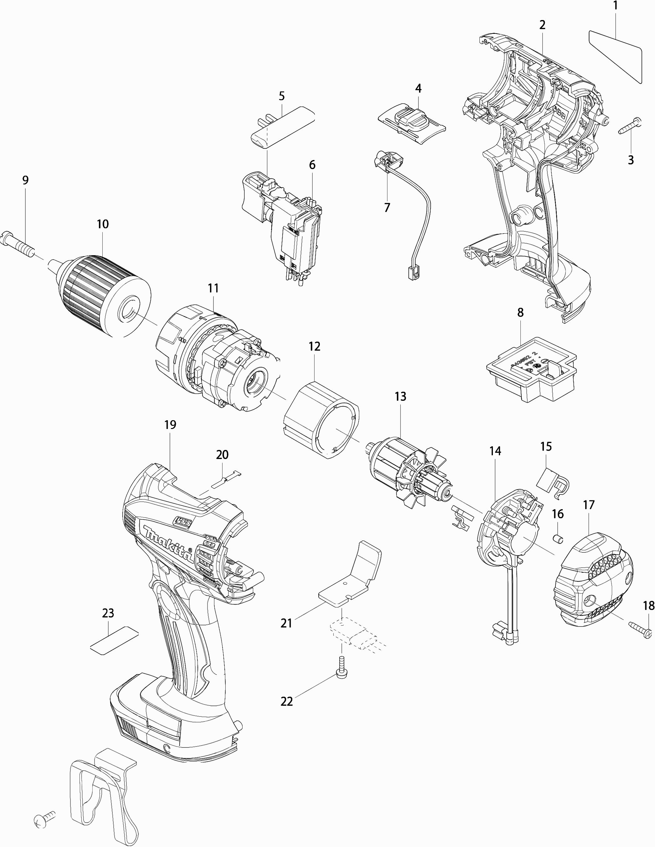 Here you will find all available parts and drawings of the 'Makita BDF456RFX'. From here you can order all desired parts directly. Many parts must be ordered from the manufacturer, depending on the brand, this takes one to four weeks. All the information we have is on our website, we cannot advise you on what you need, for that you will need to return the machine for repair. Please note the following when ordering: